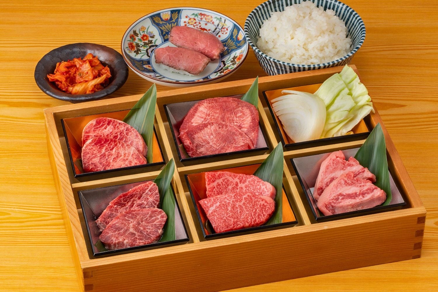 お祝い事やビジネスランチ、週末に向けたプチ贅沢にぴったりの、豪華なセットメニューも登場。黒毛和牛のとろカルビや中落ちカルビ、牛塩タンなどワンランク上のお肉に加え、見た目も華やかな「肉寿司」がセットになった、目でも舌でも楽しめる至福のランチだ。