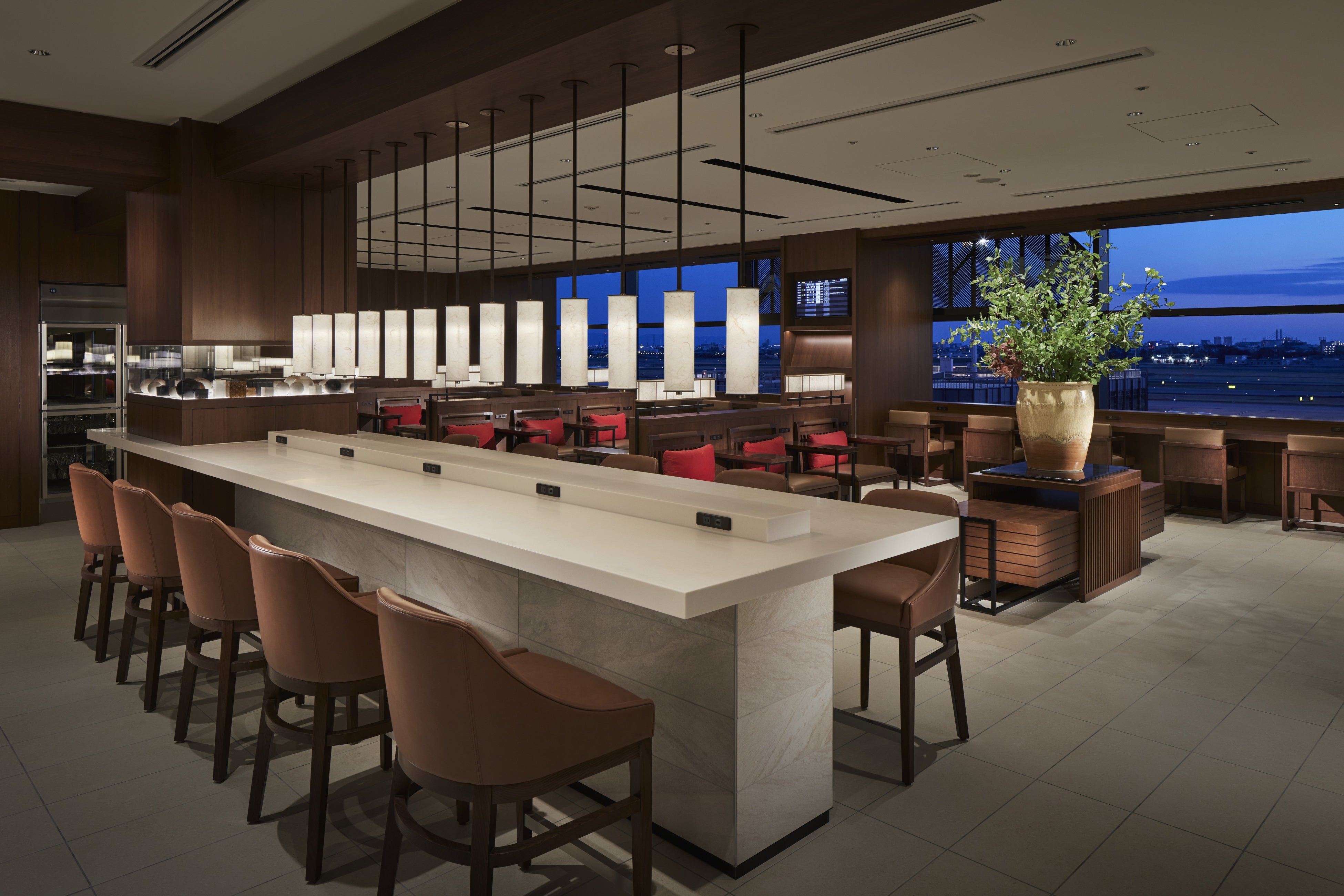 日本航空(JAL)の「ダイヤモンド・プレミアラウンジ」では国内線最上級ラウンジに相応しいくつろぎの空間を空間提供しています。対象者はJMBダイヤモンド・JGCプレミア会員およびファーストクラス利用者です。