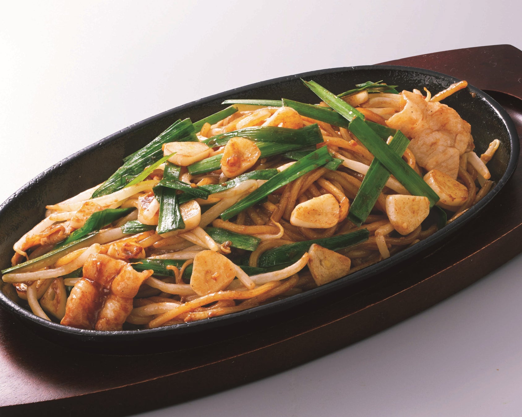 にんにくの風味を極限まで引き出した、スタミナ焼そば。香ばしく炒めた豚バラとニラ、シャキシャキのもやしが麺に絡み、ひと口ごとに旨味が押し寄せます。一度食べたら止まらない、“悪魔的なウマさ”の一皿です。