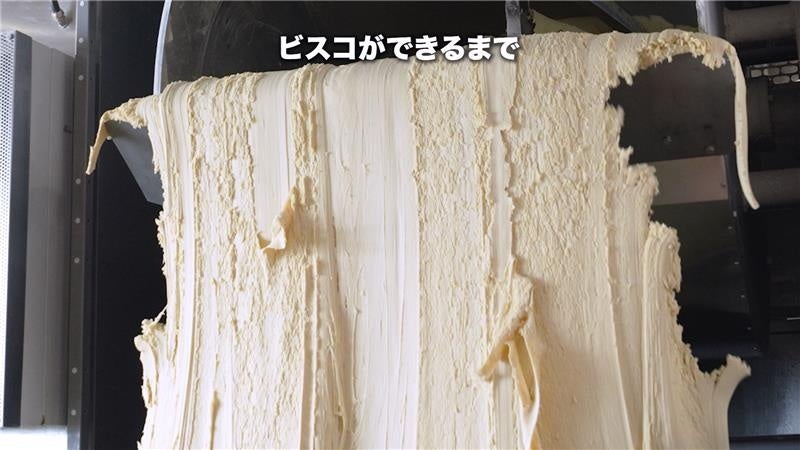 工場潜入動画では、初公開のハート型のクリームの「ビスコ」ができあがるまでの工程を、クリーム練りあがりの段階からパッケージ包装に至るまで、ダイナミックな映像でご覧いただけます。