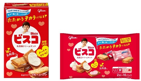 「ビスコ」は、今年で発売から93周年を迎えるロングセラーブランドです。2025年4月に、これまで配合していた「生きて腸に届くスポロ乳酸菌」に加えて、当社が保有する約 1 万種の菌株の中から独自研究によって選び抜いた「つよさうみだす GCL1815 乳酸菌」を新たに加え、お子さまの成長をいっそう応援できるよう、リニューアルしました。2つの乳酸菌が入った「ビスコ」を楽しくお届けすべく、2024年から期間限定で実施しているハート型のクリームの「ビスコ」を今年も発売します。
