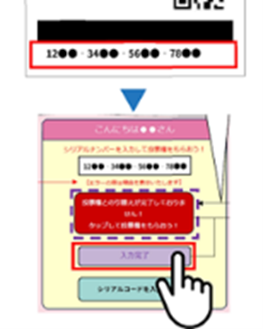 ③レシート下部に印字されたシリアルコードを入力