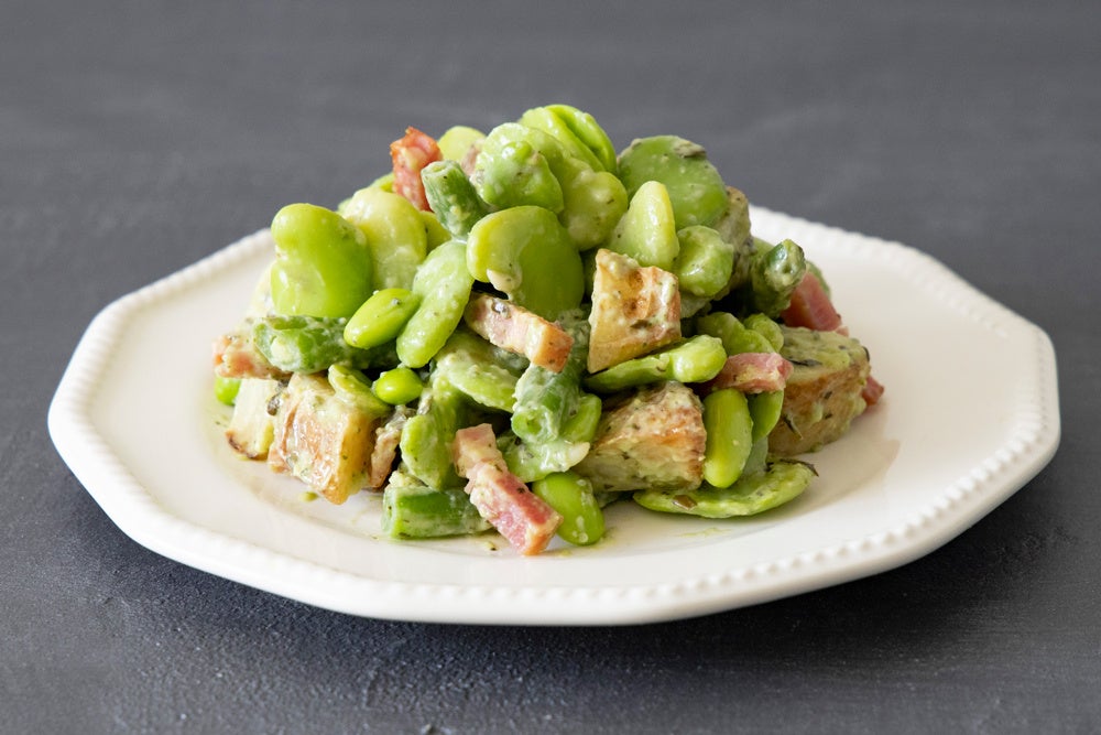 春を味わうそら豆と枝豆のジェノベーゼサラダ