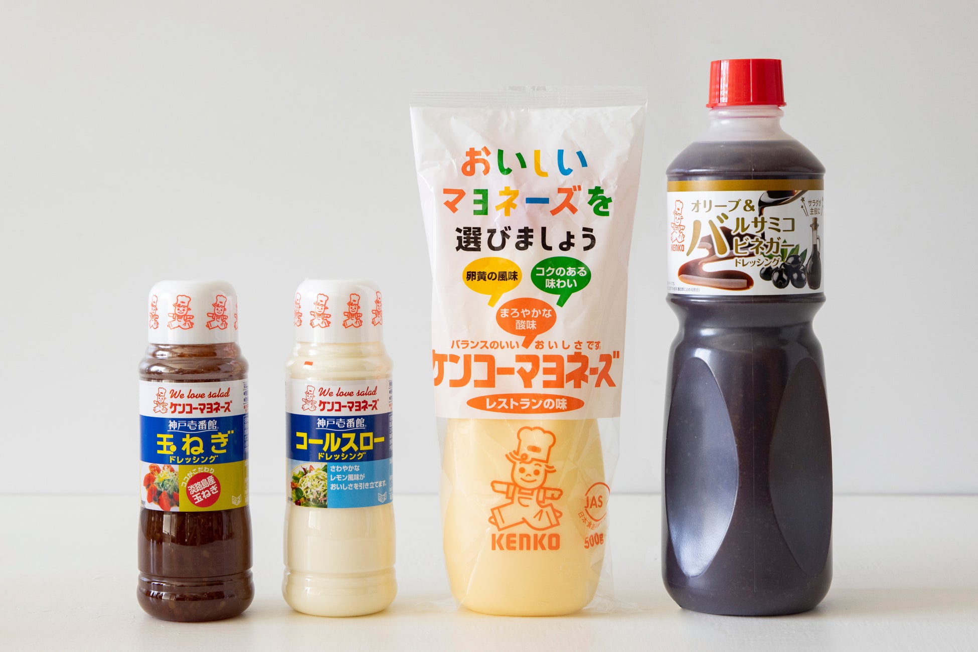 「ケンコーマヨネーズ」のロングセラー3品と、サラダが主役になるドレッシングを販売します。