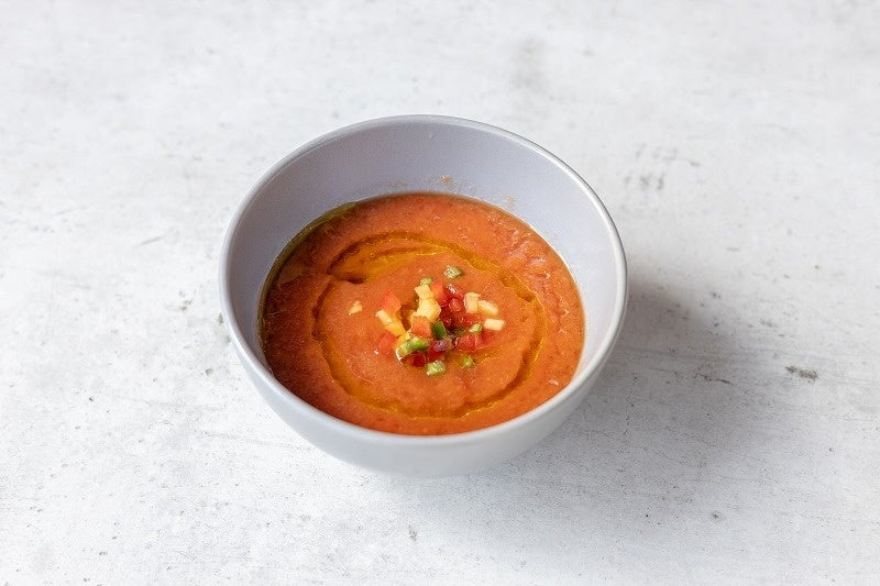 スペイン・アンダルシアの定番、冷製トマトスープを、フルーツを使ってハワイスタイルにアレンジ。