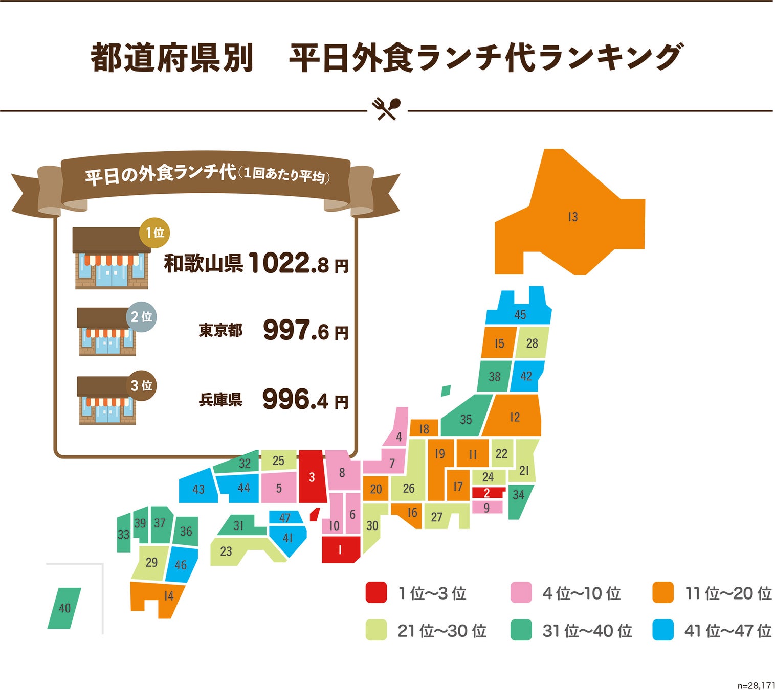 「ランチ代(外食/中食)に関するランキング」