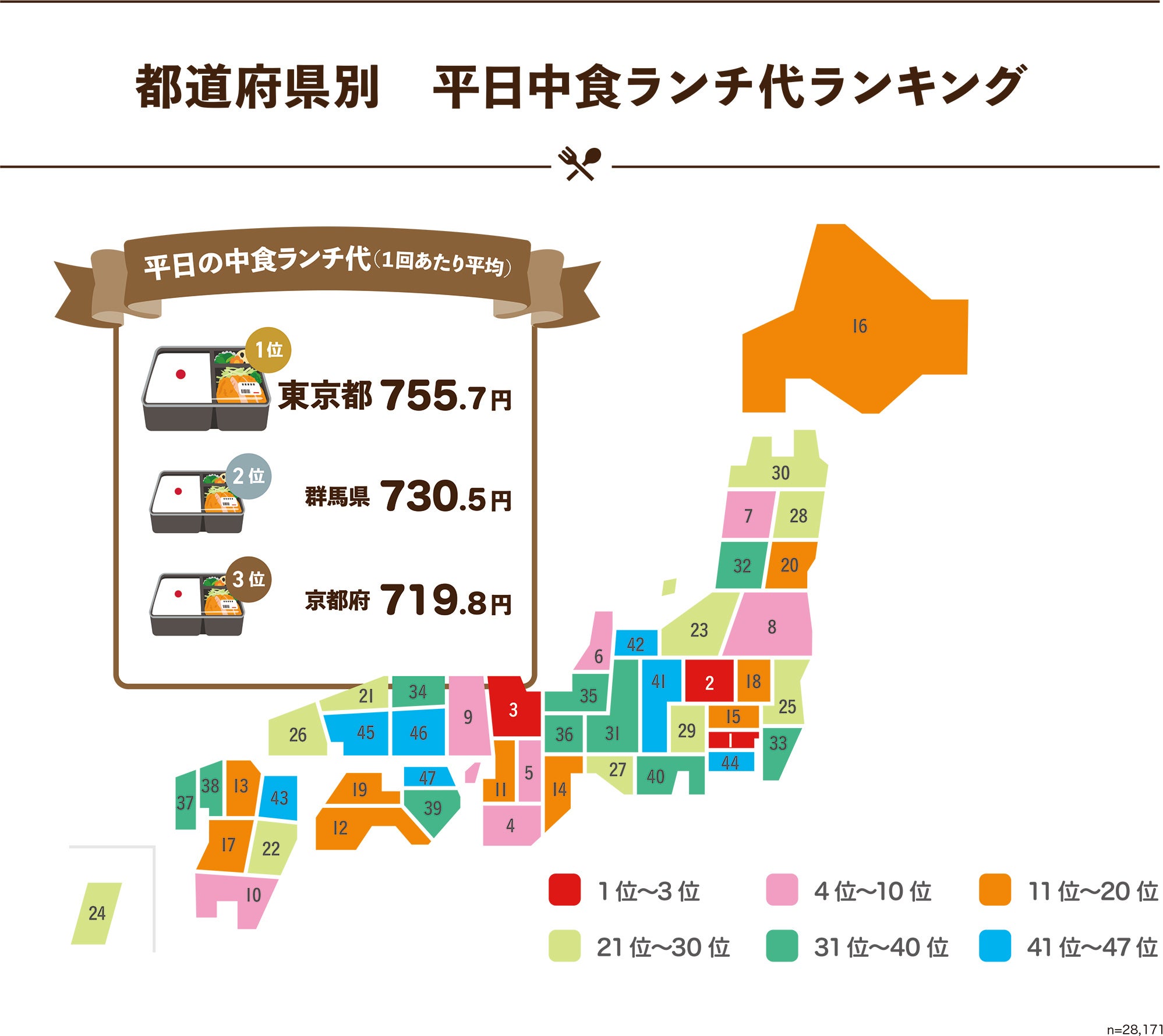 「ランチ代(外食/中食)に関するランキング」