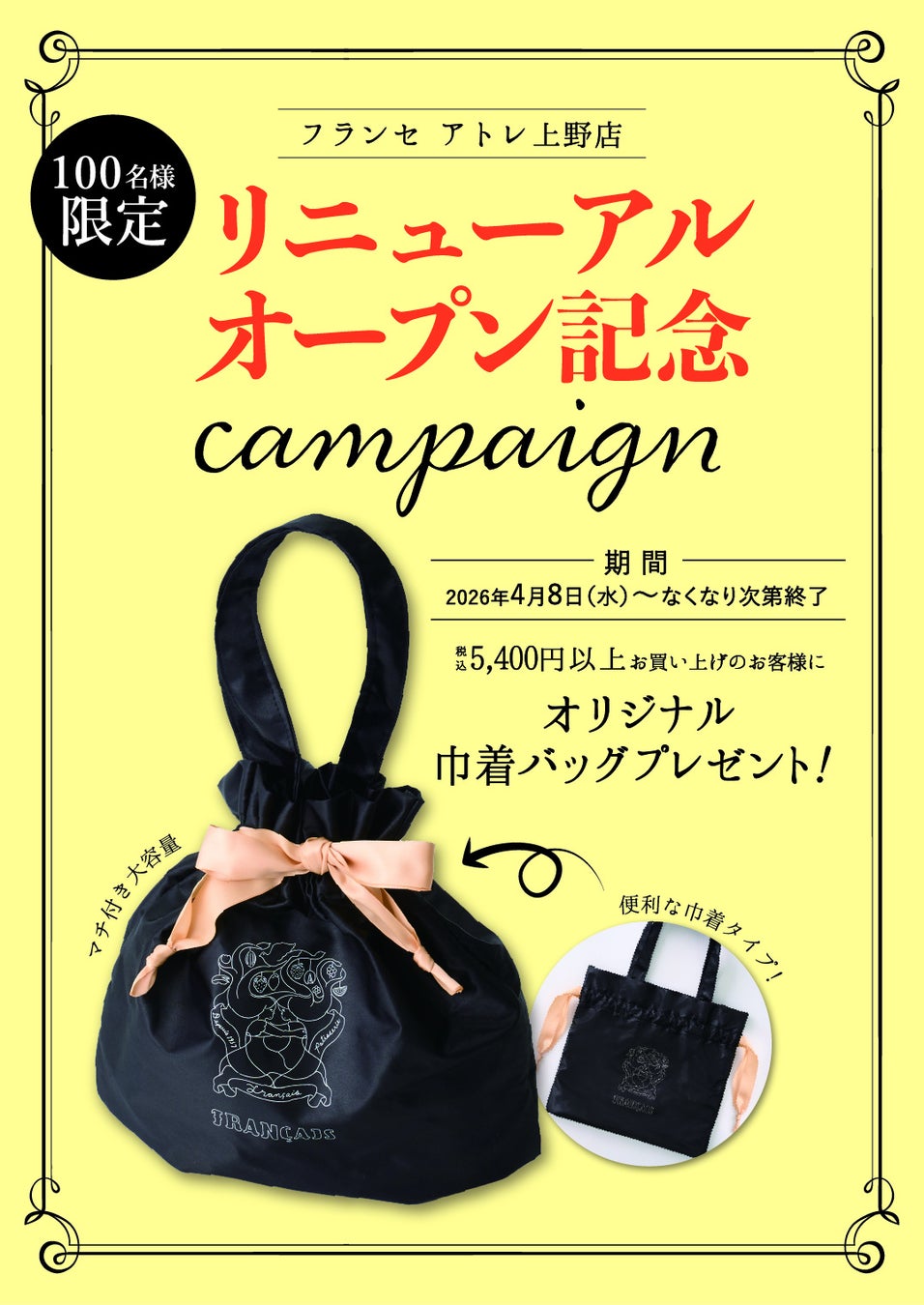 この機会に是非、リニューアルしたフランセ アトレ上野店にお立ち寄りください。