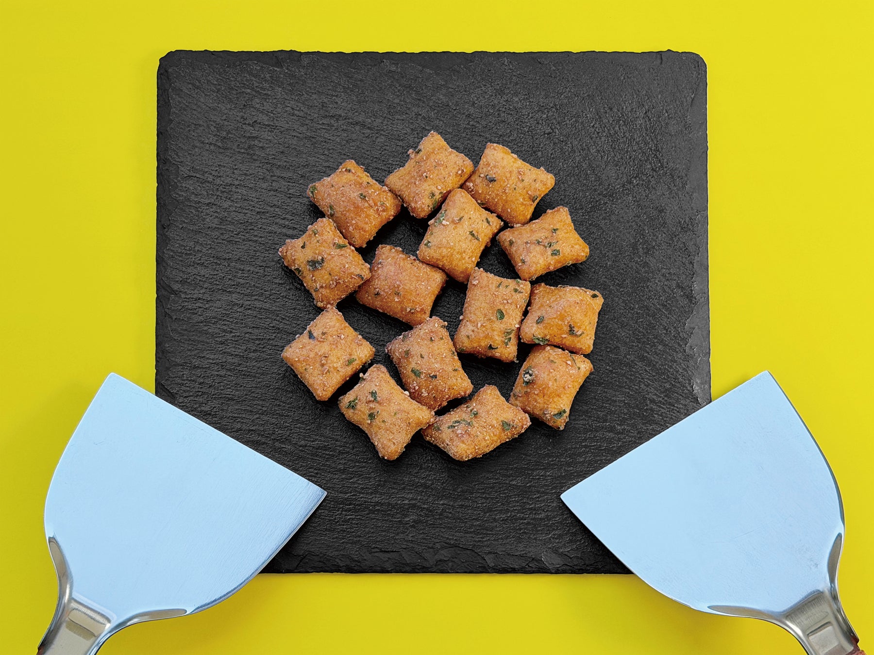 「名前の由来はかりかりとした食感」という説があるかりんとう。現代のかりんとうは食感にもトレンドを取り入れました。もち粉を練り込み長方形にカットした生地には、しっかりした噛み応えと砕ける食感だけでなく、お口から脳に響くザクザク音までもが計算されています。
