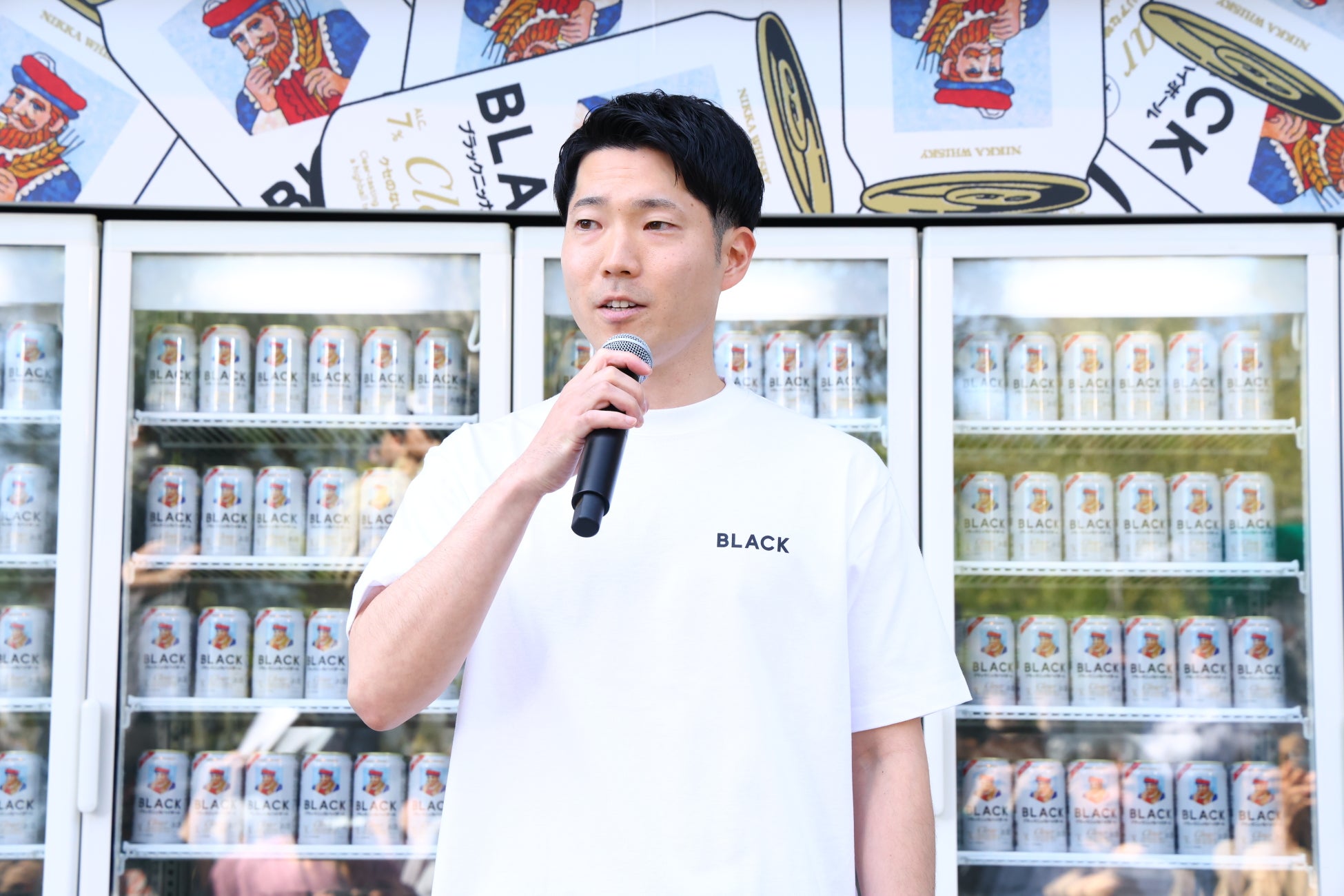 続いて、ニッカウヰスキーブランドマネージャー 大橋純一氏による挨拶を行いました。「あなたの知らないブラックニッカ展」について、「『ブラックニッカ クリアハイボール』を中心に、ブランドのユニークな魅力を体験いただけるイベントです」と紹介し、各コンテンツの見どころを説明しました。さらに本イベントの狙いについて、「20代・30代をはじめとした方々に、ハイボールやウイスキーの飲みやすさや気軽さを実感いただき、新たな楽しみ方に触れていただくことを目的としています。」と語りました。最後に、「クリアなじかんが、はじまるよ。」と本コンセプトのメッセージで締めくくりました。