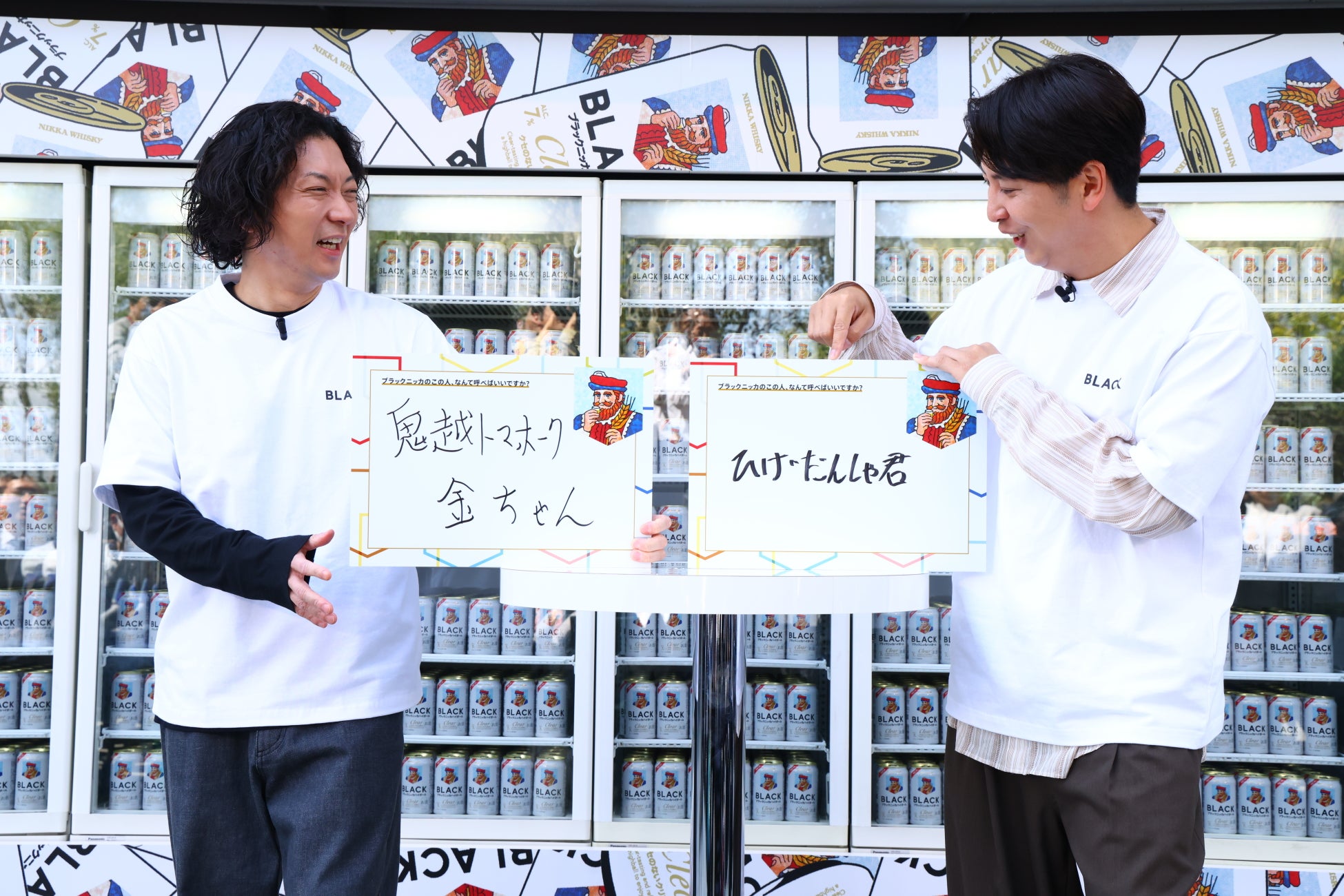 アサヒビール株式会社(本社 東京、社長 松山一雄)とニッカウヰスキー株式会社(本社 東京、社長 小野直人)は、期間限定イベント「あなたの知らないブラックニッカ展」のオープンに伴い、お笑いコンビ・ニューヨークの屋敷裕政さん、嶋佐和也さんをお招きし、「あなたの知らないブラックニッカ展」オープニングイベントを2026年4月6日(月)に原宿スクエア内 東急プラザ原宿「ハラカド」701にて開催いたしました。