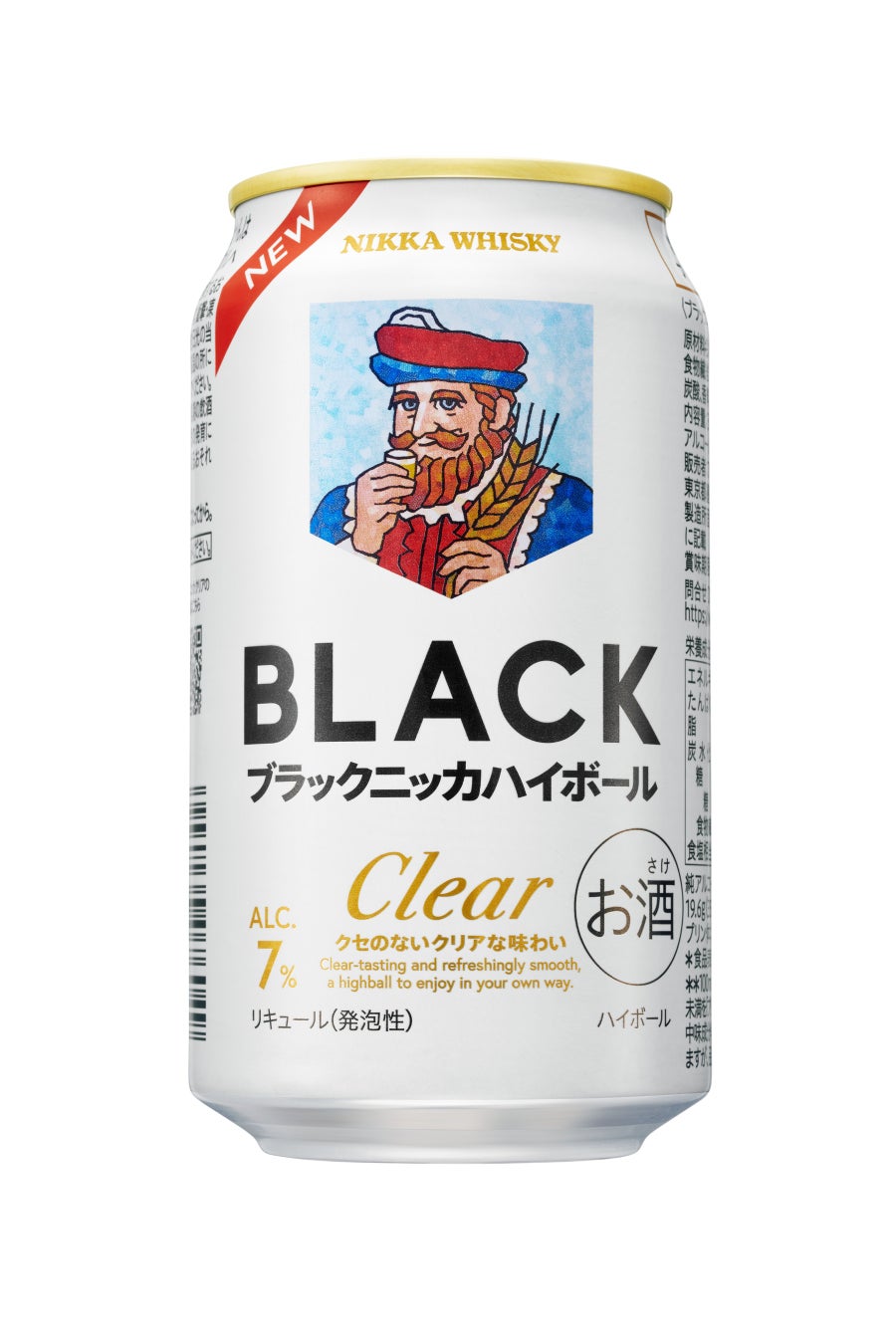 缶ハイボール『ブラックニッカ クリアハイボール』を4月7日から発売します。本商品はノンピートモルトを使用し、スモーキーさをあえて抑えたブレンデッドウイスキー『ブラックニッカ クリア』をベースにした缶ハイボールです。クセのないクリアな味わいですっきりと飲みやすく、どんな食事にも合います。ニッカウヰスキーが持つウイスキーのブレンド技術とアサヒビールがこれまで積み重ねてきたRTD※1開発の知見を掛け合わせることで、ウイスキーらしい味わいと爽やかですっきりとした後味の調和が実現しました。パッケージはシンプルな白色を基調とし、「ブラックニッカ」ブランド誕生70周年を機にデザインを刷新した“ヒゲのおじさん”ことキング・オブ・ブレンダーズのアイコンと「BLACK」のロゴを中央に堂々と据えました。