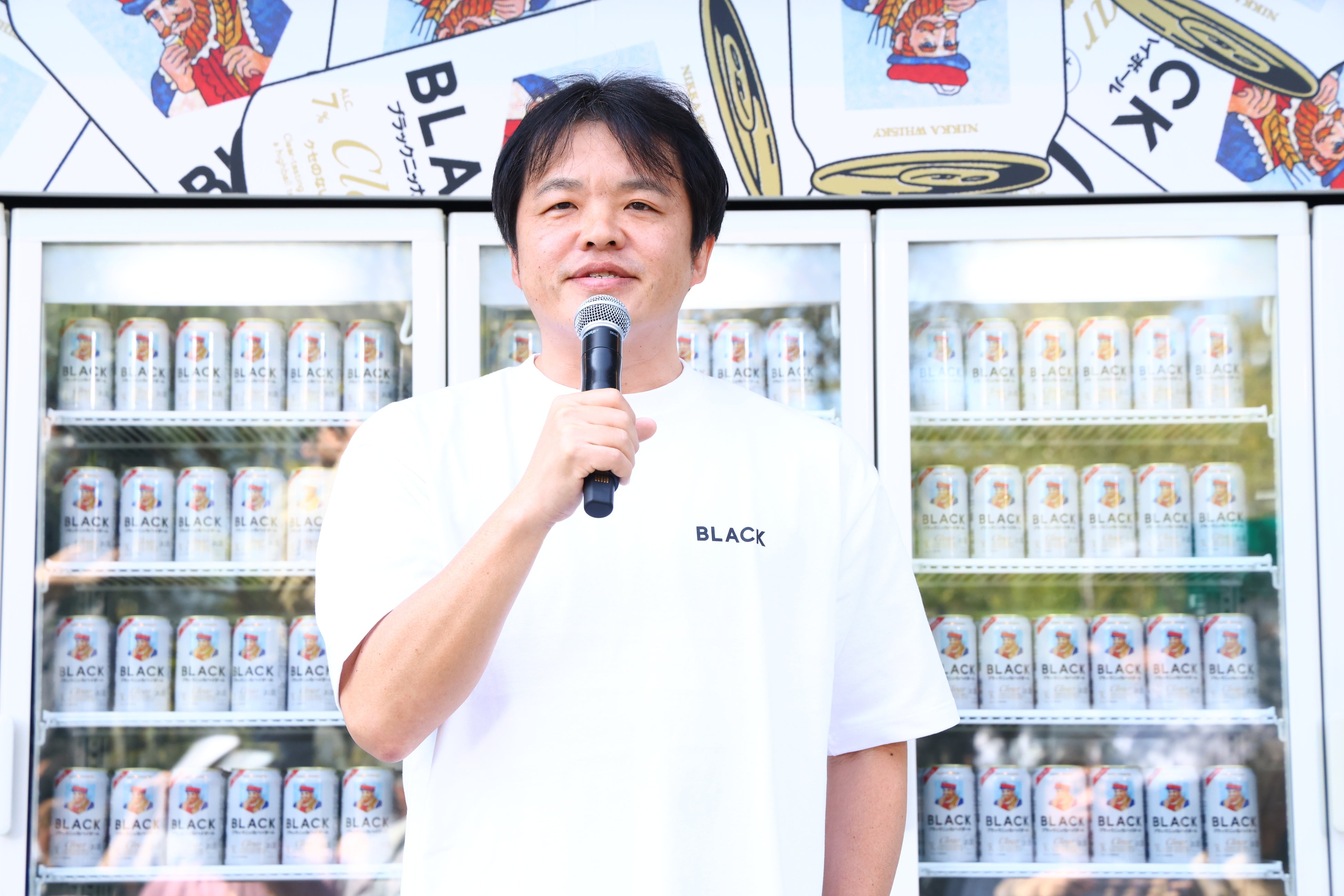 続いて、ニッカウヰスキーブランドマネージャー 大橋純一氏による挨拶を行いました。「あなたの知らないブラックニッカ展」について、「『ブラックニッカ クリアハイボール』を中心に、ブランドのユニークな魅力を体験いただけるイベントです」と紹介し、各コンテンツの見どころを説明しました。さらに本イベントの狙いについて、「20代・30代をはじめとした方々に、ハイボールやウイスキーの飲みやすさや気軽さを実感いただき、新たな楽しみ方に触れていただくことを目的としています。」と語りました。最後に、「クリアなじかんが、はじまるよ。」と本コンセプトのメッセージで締めくくりました。