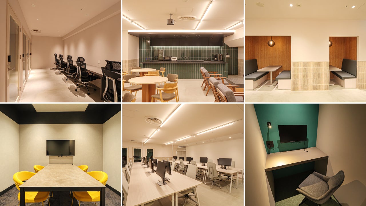 会議室4室とプロジェクター利用可能な広いラウンジのあるコワーキングスペース。