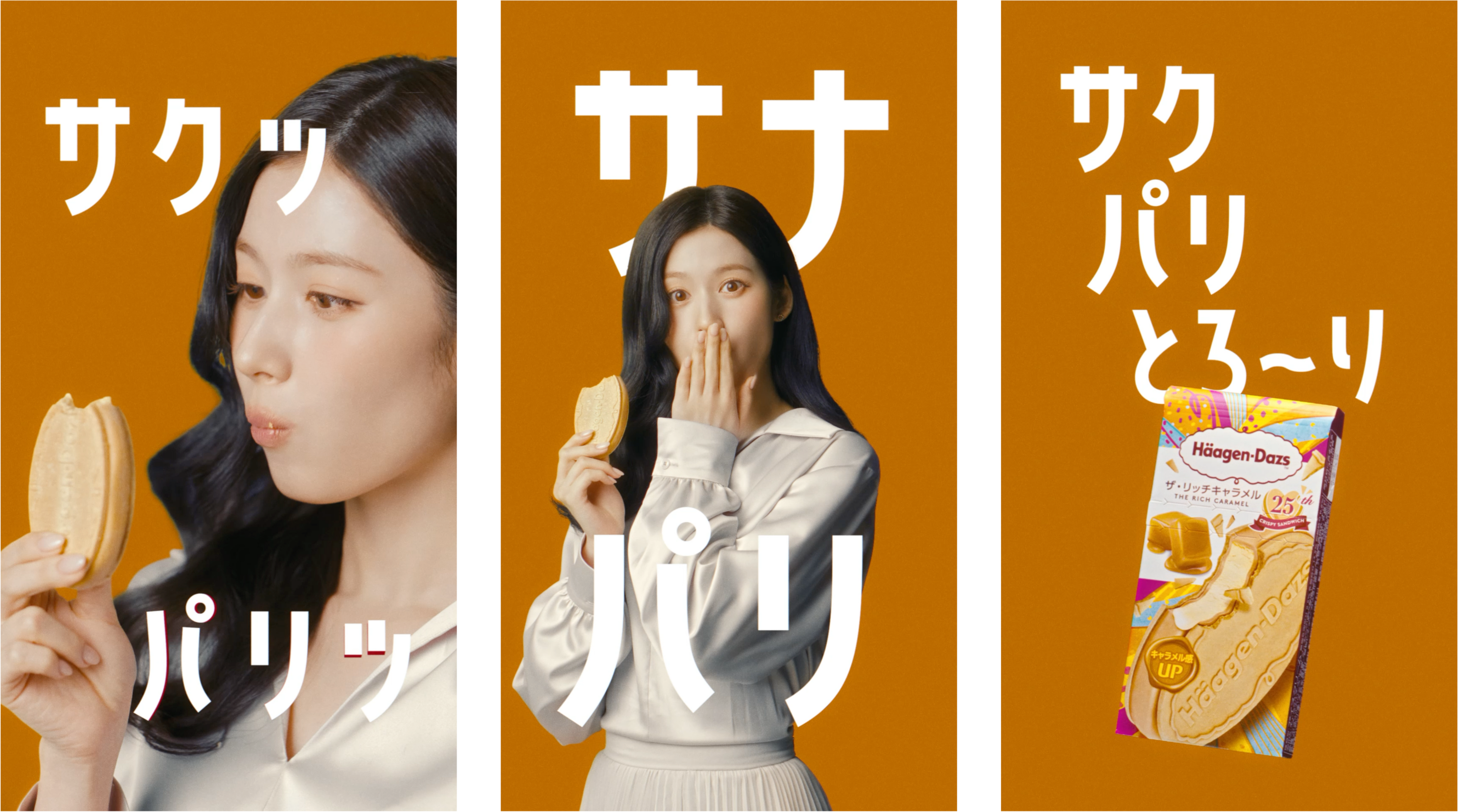 また、同じくSANAさんが出演する、クリスピーサンドのおいしさ構造を伝える新WEBCM「サクッパリッとろ〜り」篇を4月13日(月)より、ハーゲンダッツ公式YouTubeや各SNS等で配信します。