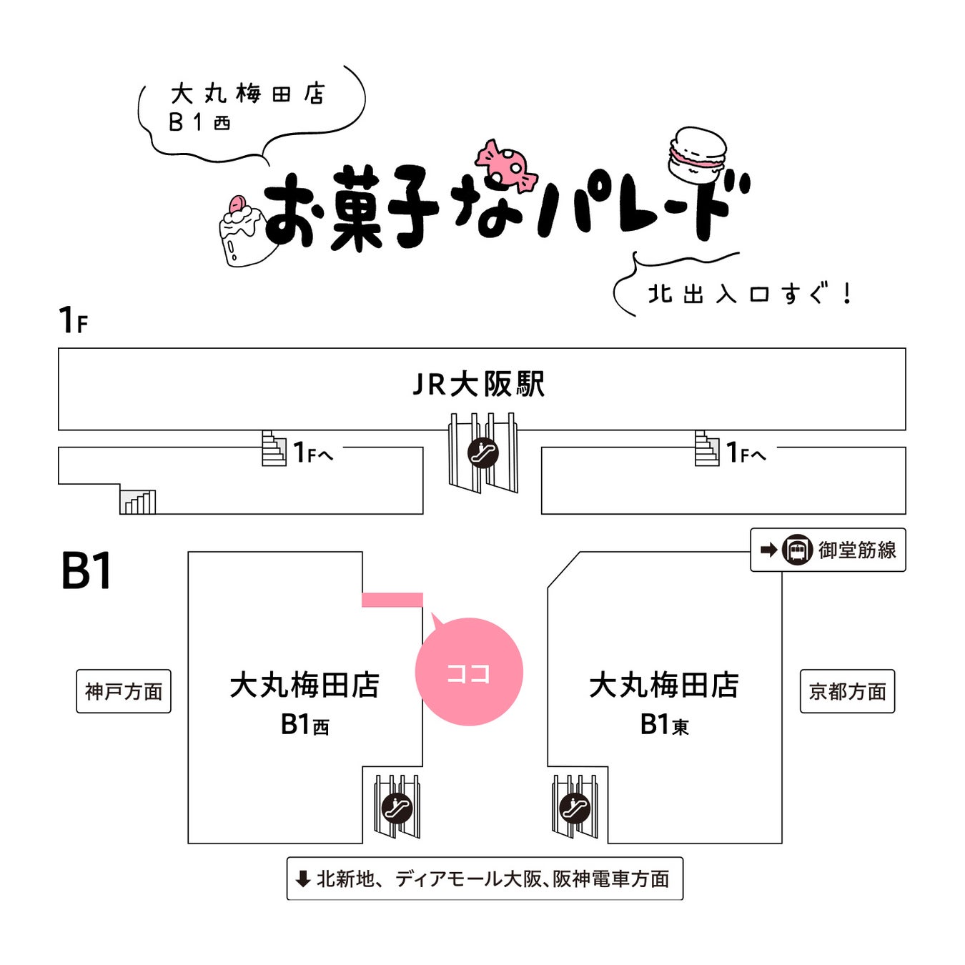 【場所】 大丸梅田店 地1階西 出入口前 お菓子なパレード