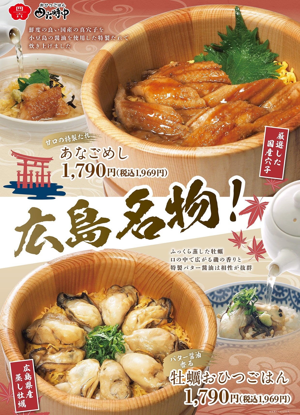 当店では、こうした立地特性を踏まえ、お食事だけでなく和カフェとしても利用できる新たな店舗モデルを導入、さらに地域特性を反映した限定メニューとして広島県産牡蠣を使用した「牡蠣おひつごはん」や国産あなごを使用した「あなごめし」をご用意いたしました。今後も本出店を起点に広島市周辺における店舗網拡大とブランド価値向上を図るとともに、立地特性に応じた最適な店舗モデルの展開を通じて、より多くのお客さまに新たな「食」の楽しさを提供してまいります。