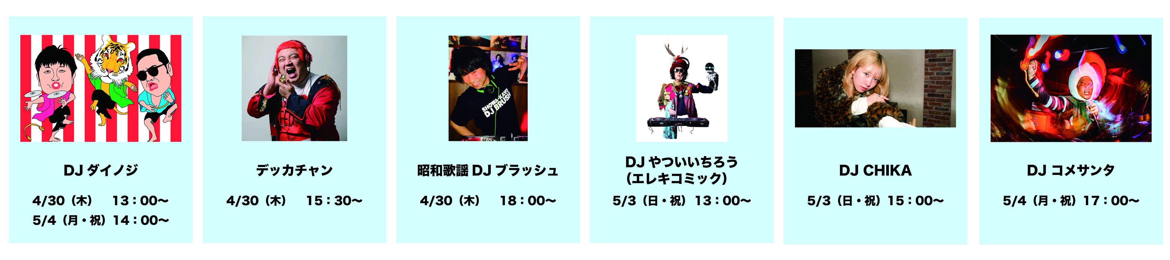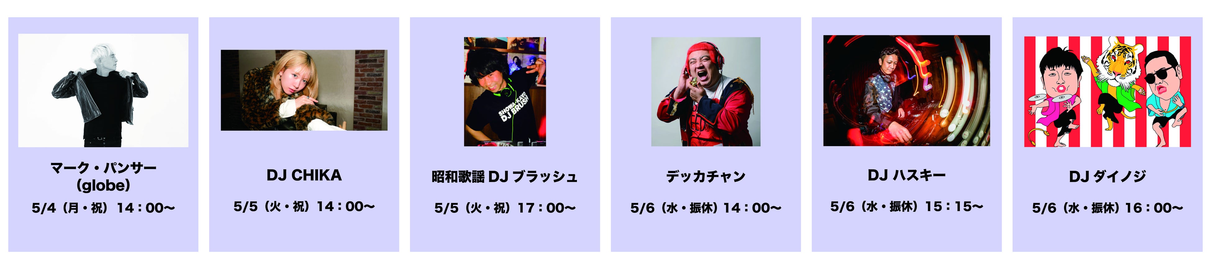 【5/6】14:00〜デッカチャン/15:15〜DJハスキー/16:00〜DJダイノジ