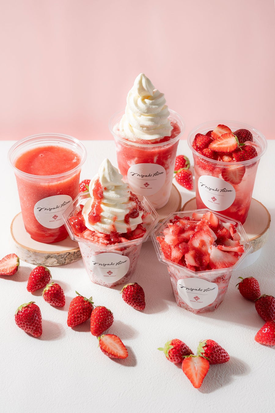 自社農場で一粒一粒丁寧に育てた「ミガキイチゴ」を、削る・混ぜる・浮かべるなど、多彩なスタイルでご提案します。