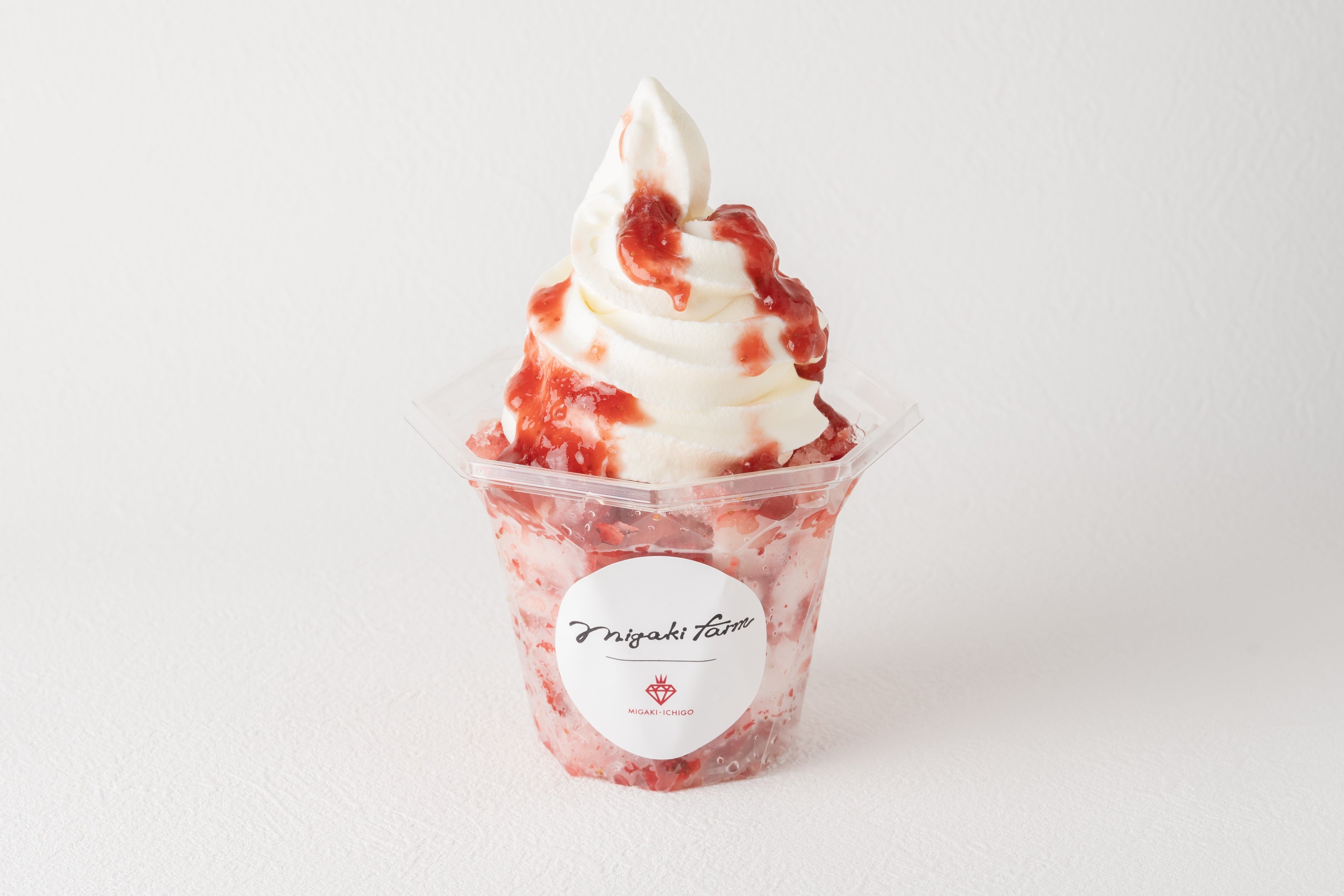 「まるごとけずりいちご」に、濃厚なソフトクリームをプラス。冷たい果肉とまろやかなミルクが口の中で溶け合う、贅沢なハーモニーを楽しめます。