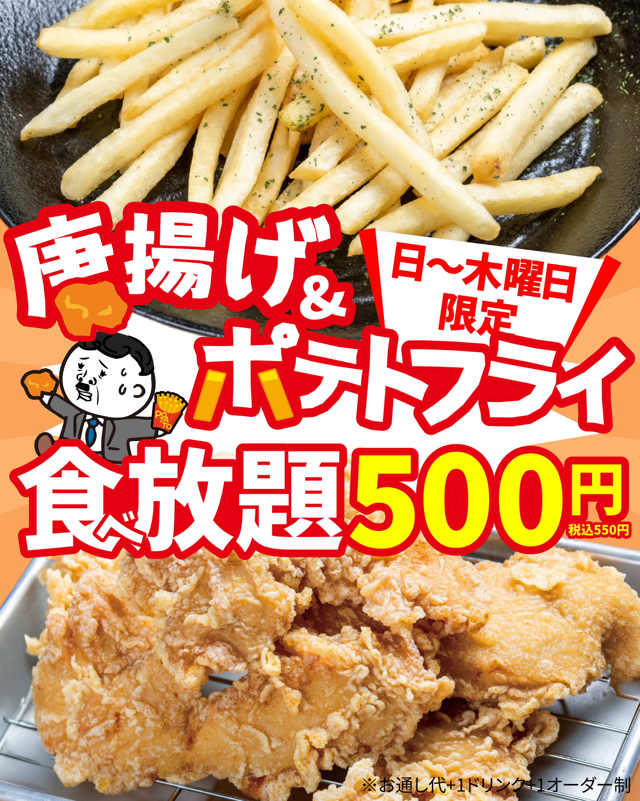 むね肉唐揚げ・フライドポテトが制限時間内食べ放題