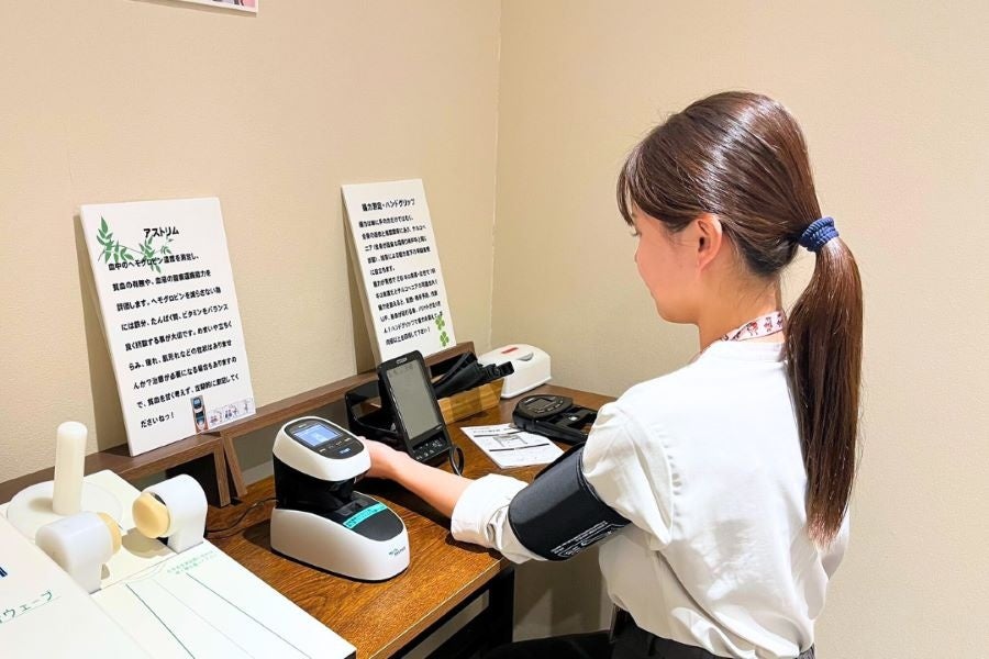 「からだLabo」は、従業員が日々の体調を気軽にセルフチェックできる専用スペースです。骨健康度やヘモグロビン推定値の測定器、血圧計、ストレッチボードなどを常設しています。単なる測定場所にとどまらず、心身のリフレッシュを図りながら自身の健康への関心を高めるきっかけの場となっています。