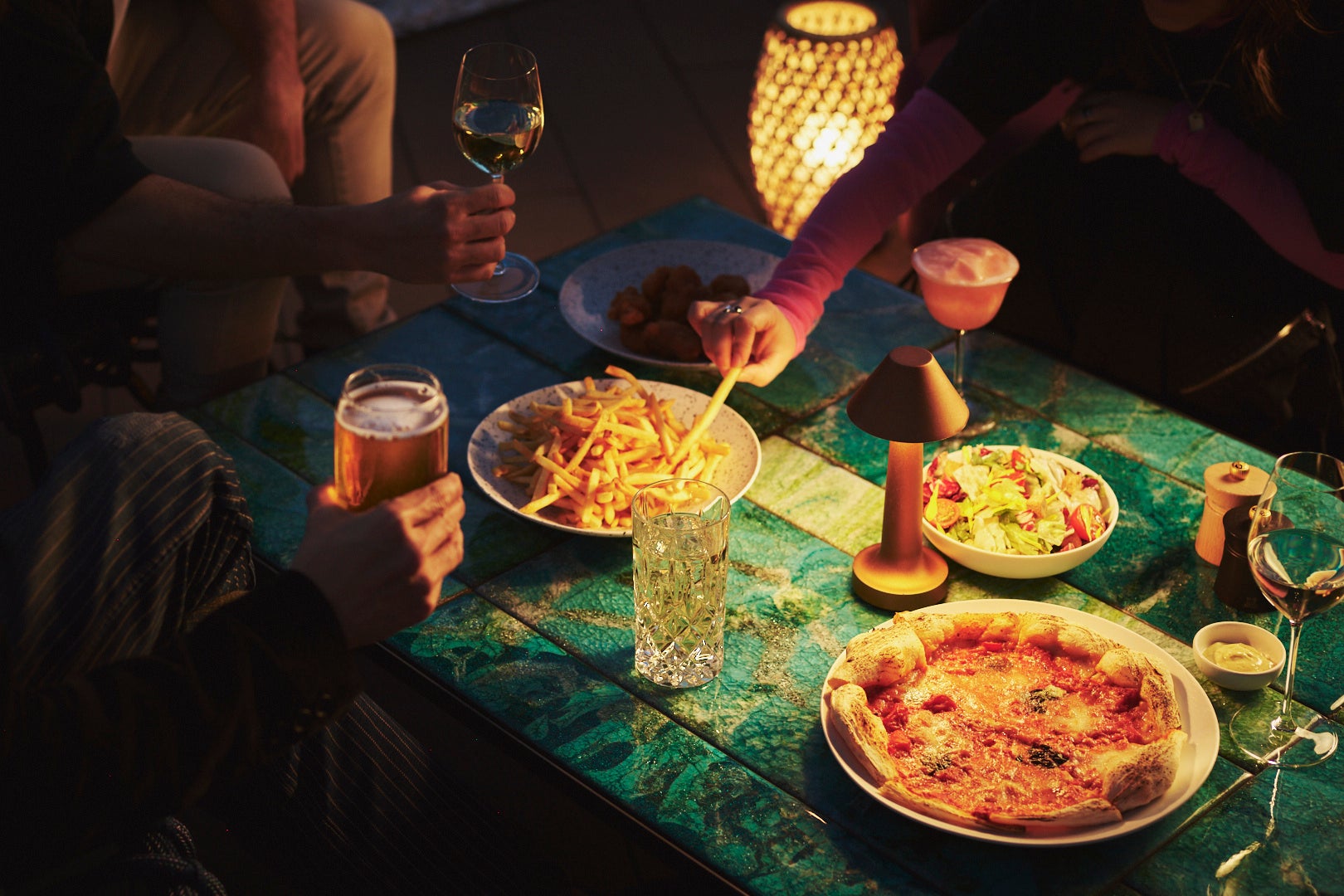 また、本場ナポリ出身のシェフが手掛けるピザマルゲリータをはじめとしたフードメニューも充実。「コアントロー」のネオンサインが、渋谷のダイナミックな街のエネルギーをより一層引き立てる開放感あふれる空間で、フローズンマルガリータとフードとともに、涼やかで心地よいひとときをお過ごしください。