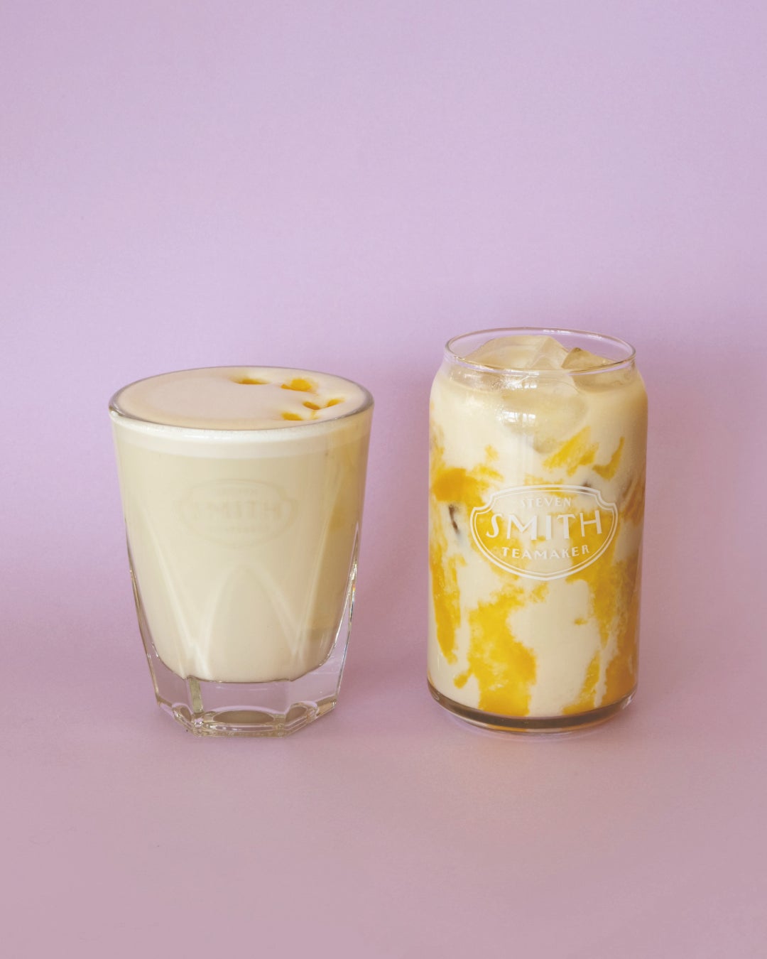 この時期限定の「No.20 Jasmine Nectar」を、今シーズン初めてティーラテとしてご提供します。Smith Teamaker のティーラテは、コーヒーの抽出に用いるエスプレッソマシンで茶葉を凝縮した「ティーエスプレッソ」を軸につくります。高濃度で引き出された旨みと香りは、ミルクと合わさったとき、混ざり合うのではなく、互いを引き立て合います。グラスの中に立ち上がるのは、ジャスミンの澄んだ香りと、ネクタリンの明るい果実感。ミルクのまろやかさの奥に、花とスパイスの余韻がやわらかく続きます。