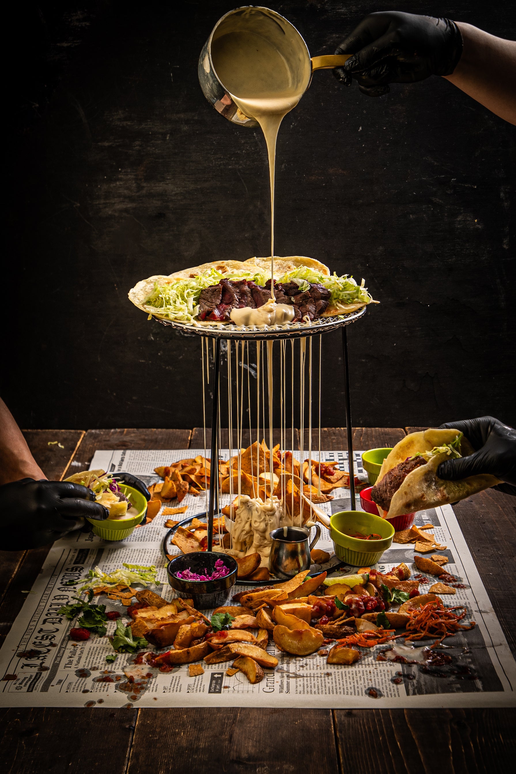 SNSで話題となった「ジャンキーチーズタコス」の進化系の【手袋グルメ】を新たに考案。まずは、スタッフがテーブルにポテトとナチョスを豪快にばらまくというその光景に驚くはず!更には見たことがないようなタワーにのせられたタコスとトッピングのお肉が登場。真上からトロトロのチーズがタコスとトッピングに直撃しつつも、ドロドロと滴り落ちるその瞬間はまさにシャッターチャンス!滝のような、それでいて繊細な糸のような、そのチーズにディップしながらお好きなトッピングでも楽しめるタコスをワイルドにお召し上がりください。メインのタワータコスの他にも、「王道ジャイアントソーセージのジャーマンポテトサラダ」や「厚切りポークステーキ〜レモンバター添え〜」など全7品のボリュームあるプランでご用意しました。(ワンドリンク付)。友達同士でワイワイ盛り上がること必至の「【期間限定】進化系パーティータワータコス・全7品コース」をぜひお楽しみください!