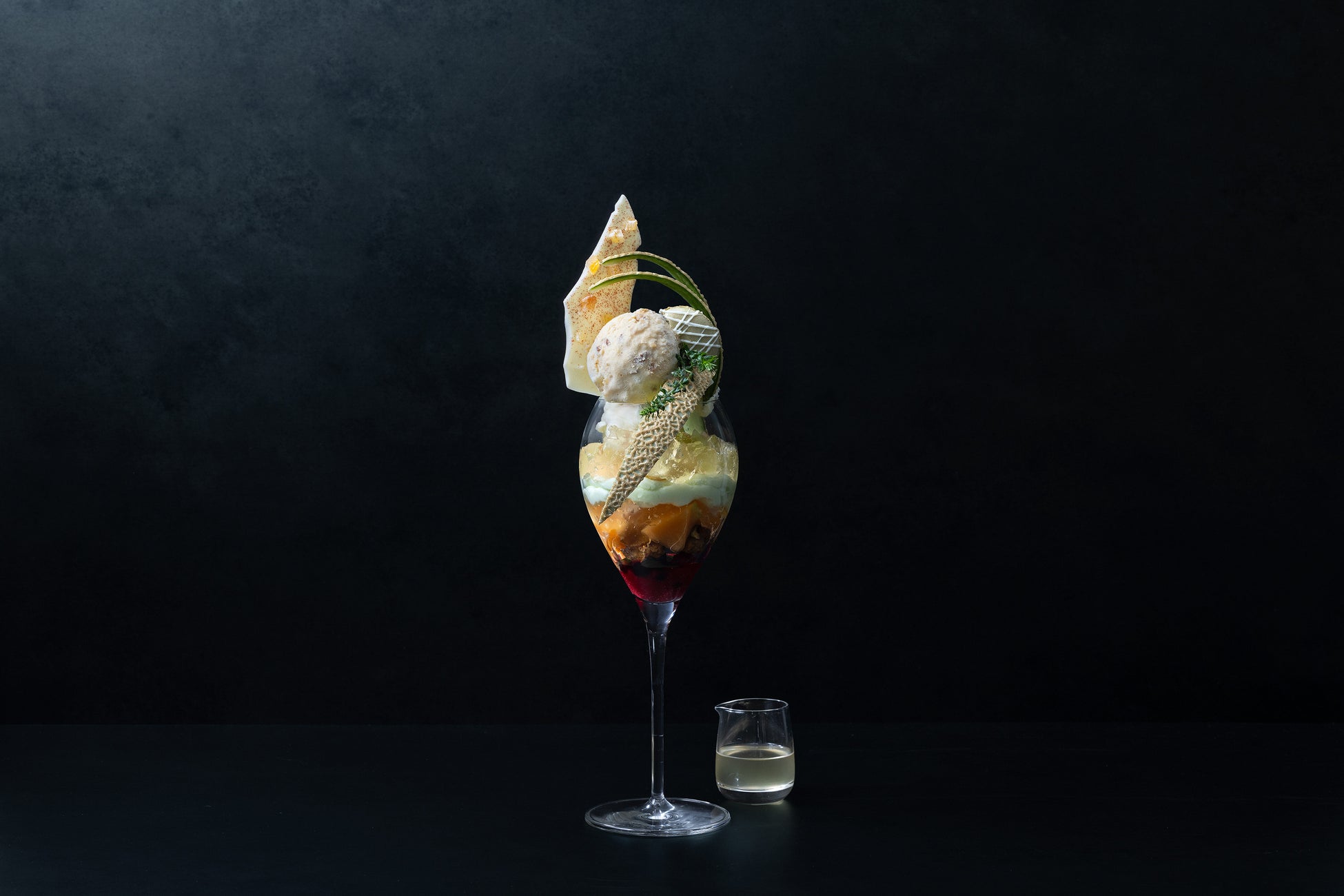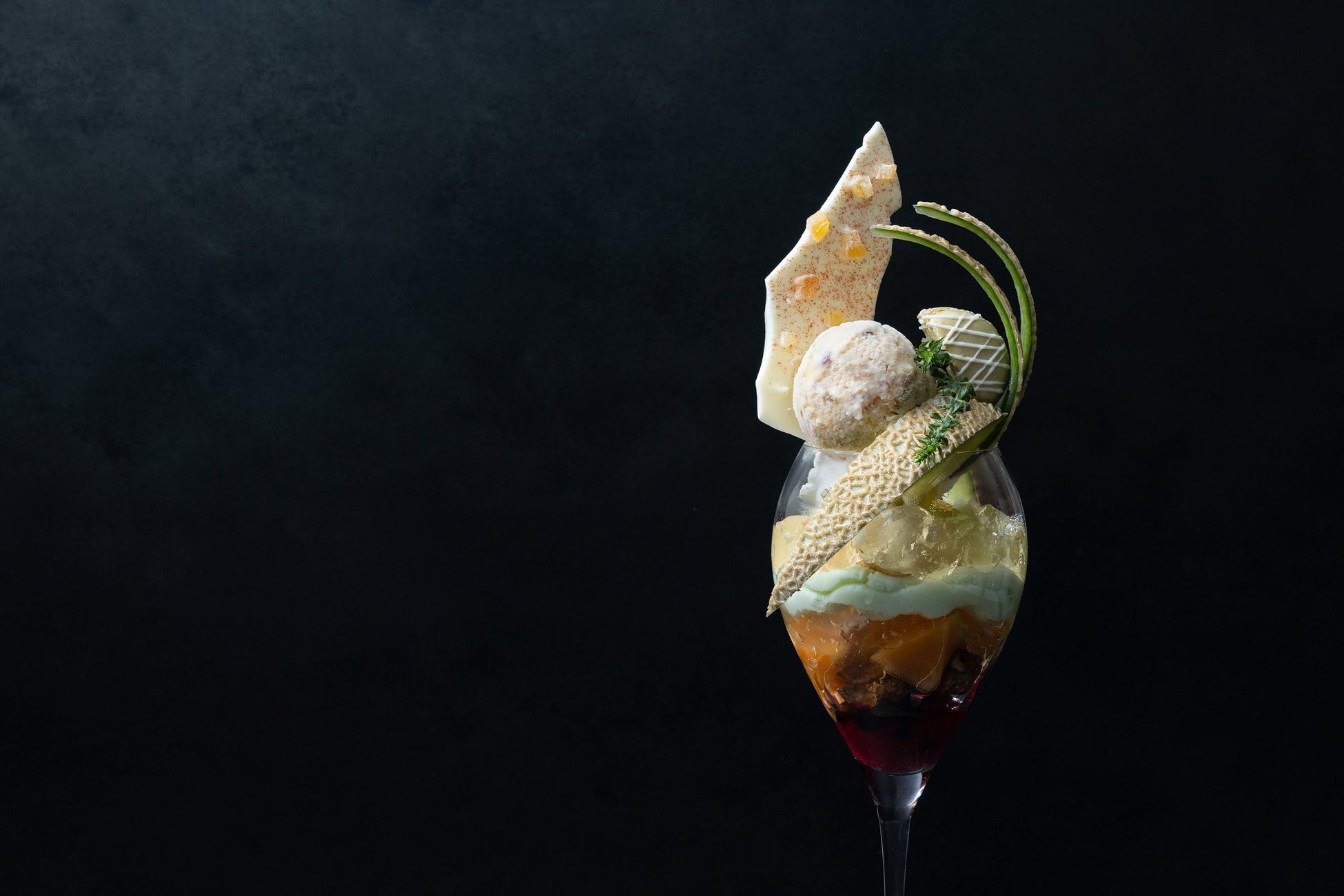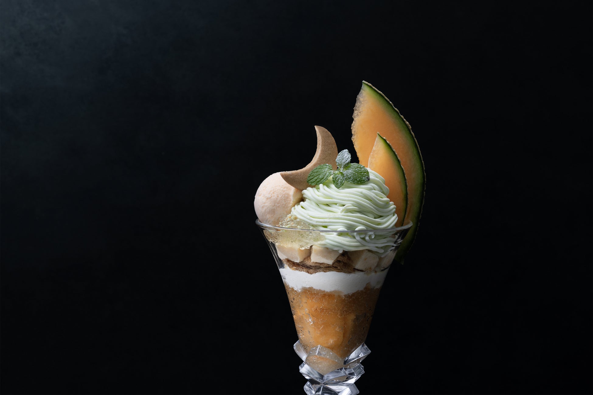 みずみずしいメロン果肉とメロンジェラートに、レモンカシスの甘酸っぱさと生姜果肉ジュレを重ねた春らしい一品。いちごムースとライム香るジンジャーゼリーのやさしいアクセントに、仕上げに添えたジンジャーエールシロップで味わいの変化もお楽しみいただけます。甘みと酸味が心地よく調和するパフェです。