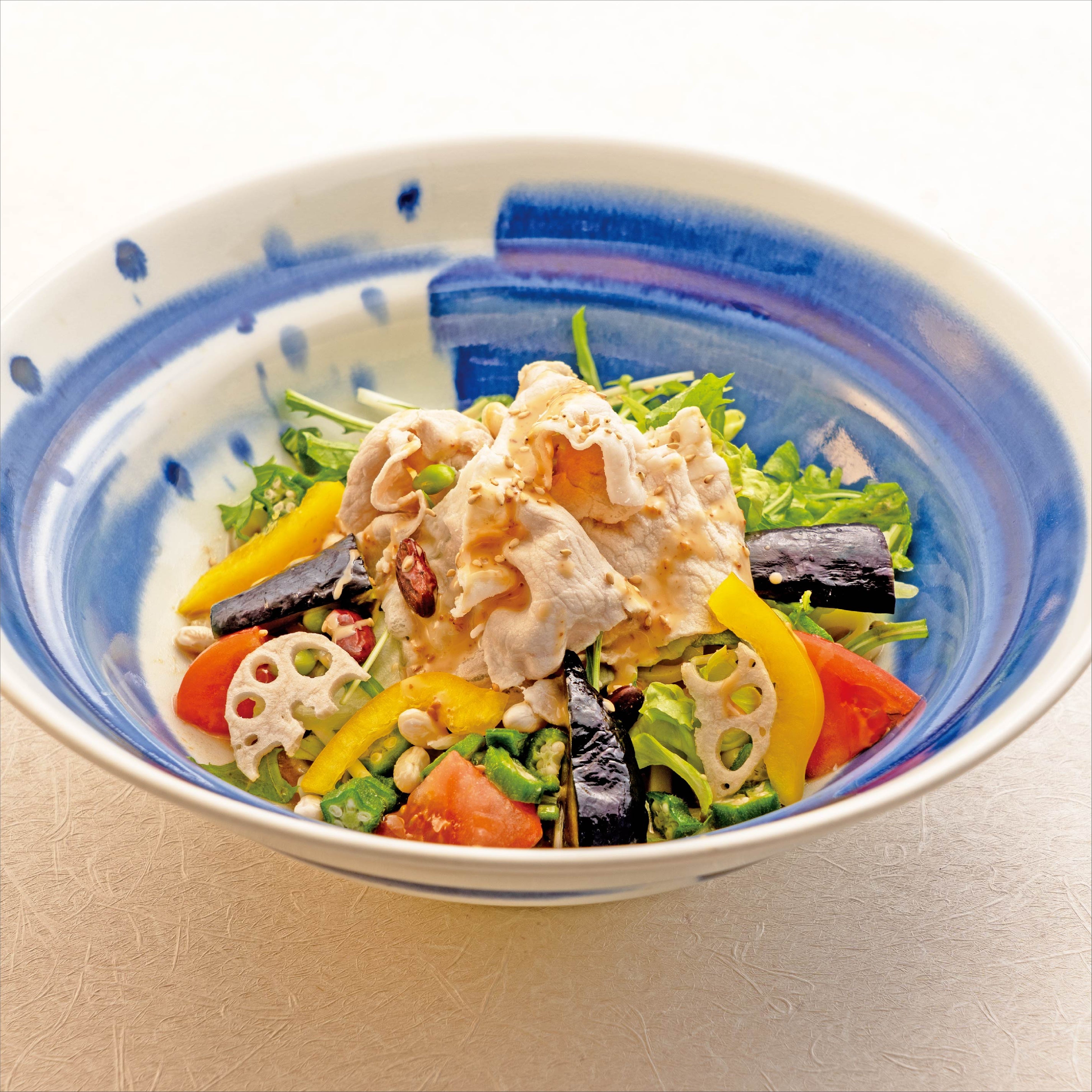 ・今年は「桜雪もち豚」を使用した、柔らかく旨味を味わうロース肉を冷しゃぶにしました。特製のごまだれとたっぷりの野菜は相性バッチリ!ぜひご賞味くださいませ。