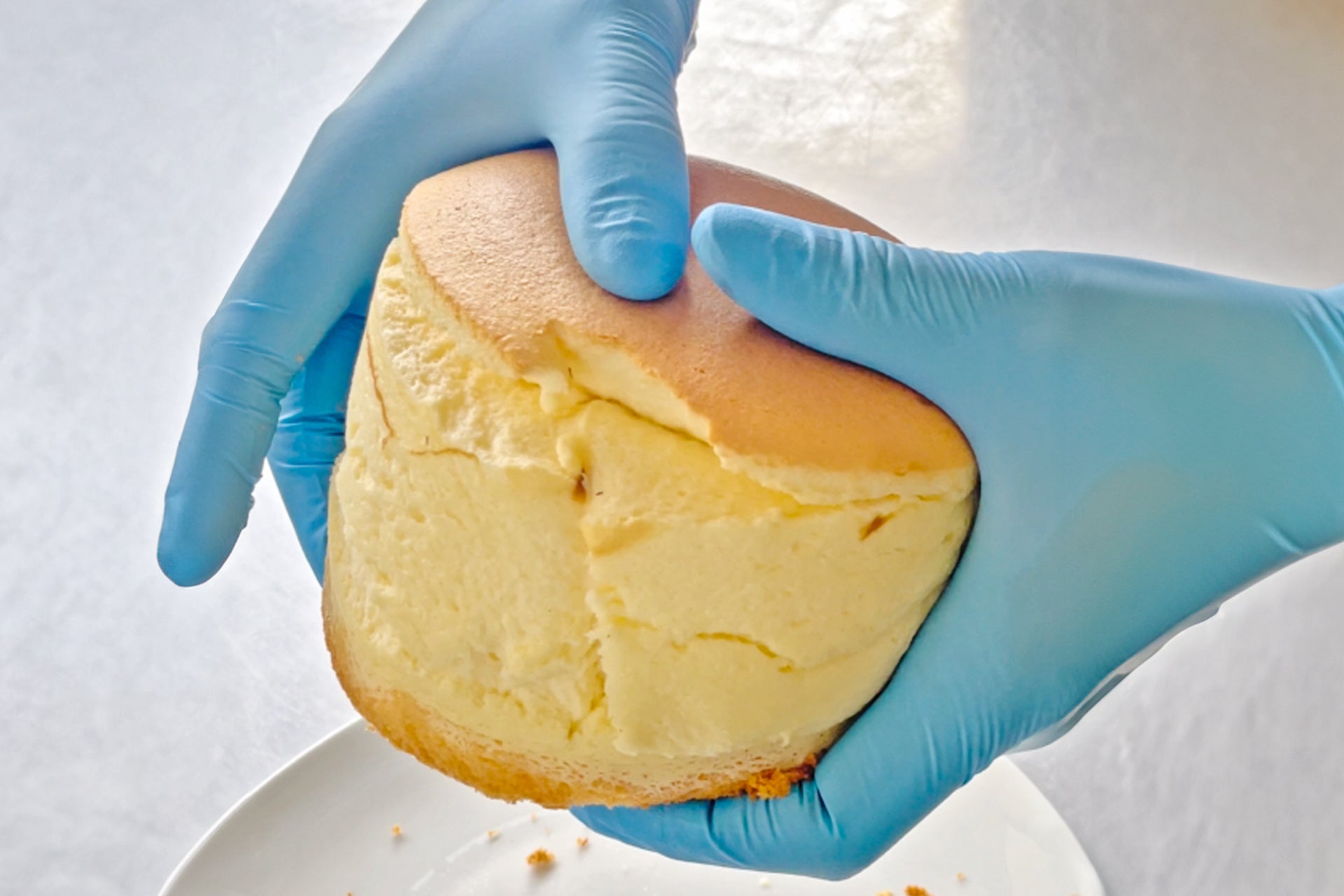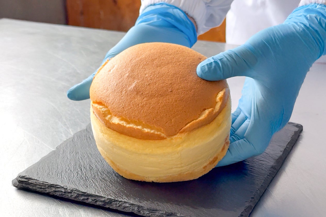 出来たてのチーズスフレは、不思議なほどふんわり・ぷるんと揺れる、儚いほど繊細な質感。少しでも指先に力を込めようものなら、その瞬間に崩れてしまうほどのやわらかさです。