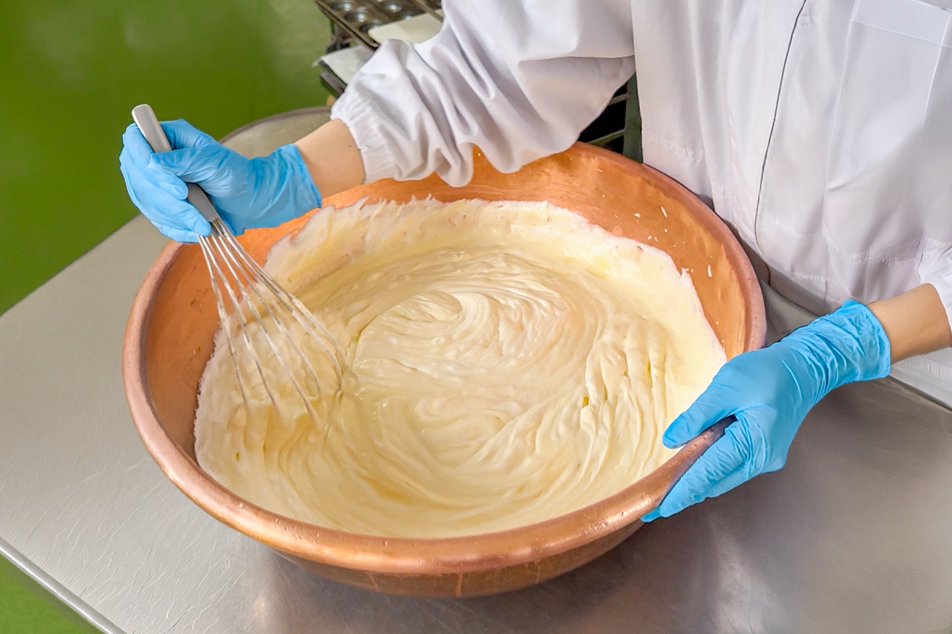 軽やかな塩気と芳醇な香りが特徴のチーズ。このエダムチーズを隠し味に加えることで、ただ甘いだけではない、チーズの旨みがぐっと際立つ奥深い味わいに。後味をきゅっと引き締め、もう一口食べたくなる絶妙なバランスを生み出しています。