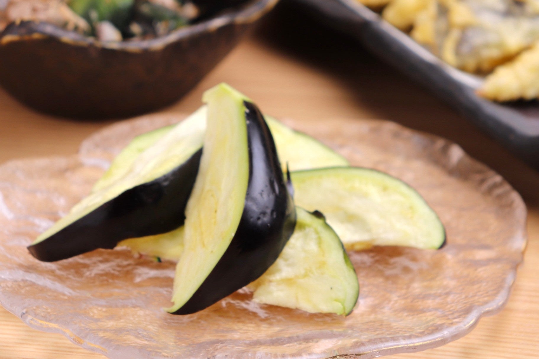 さらに、「水なすの天ぷら」は、軽やかな衣の中に甘みを閉じ込め、外はサクッと中はとろけるような口当たりに仕上げました。出汁の旨みを含ませた「揚げ浸し」や、素材の味を活かした「浅漬け」など、調理法ごとに異なる味わいをお楽しみいただけます。