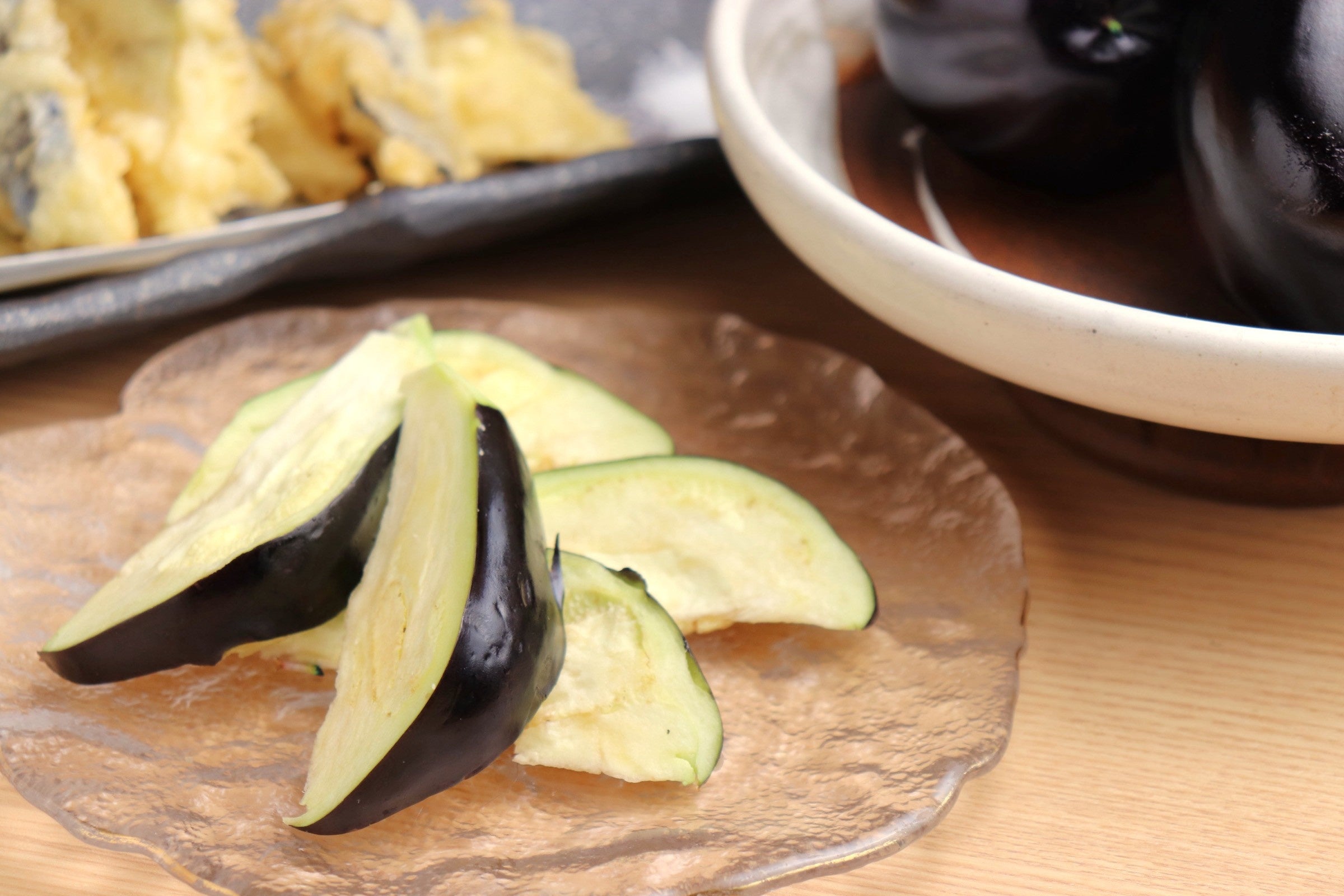 さらに、「水なすの天ぷら」は、軽やかな衣の中に甘みを閉じ込め、外はサクッと中はとろけるような口当たりに仕上げました。出汁の旨みを含ませた「揚げ浸し」や、素材の味を活かした「浅漬け」など、調理法ごとに異なる味わいをお楽しみいただけます。