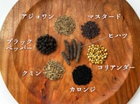 ヒハツ(長胡椒)、黒胡椒、生姜などが当時の辛味の主役でした。東インドエリアで古くから伝わるミックススパイス「パンチフォロン」の原型を参考に7種のスパイスを使用しています。油は当時主流のごま油、うま味の補填には仏教用語にある乳製品『醍醐』の背景からヨーグルトを使用しています。