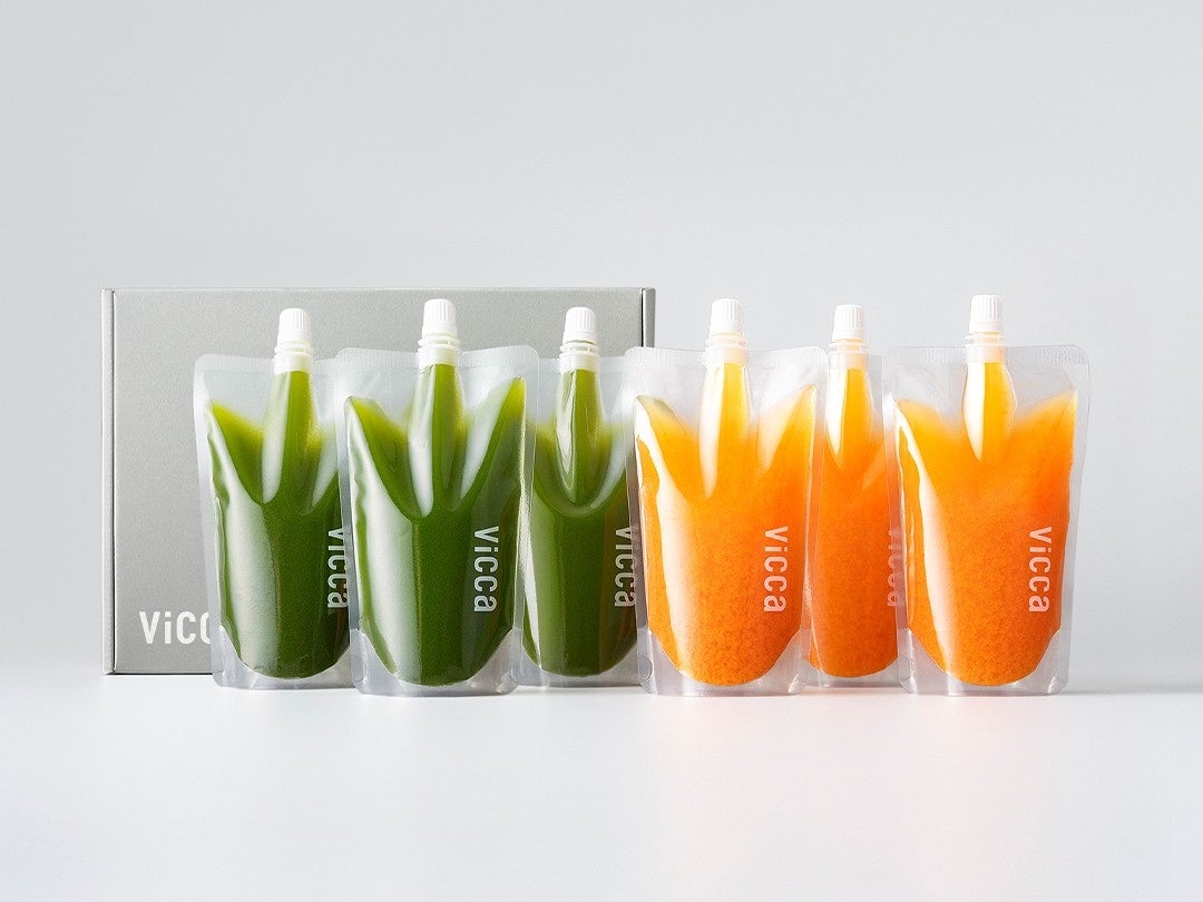 『Vicca』は、現代人の健康的なライフスタイルを実現するため、「フルーツを飲む」という新しい健康習慣を提案し、“フルーツウェルネス”の実現を目指す“ダブルプレスジュース”ブランドです。1本で1日に必要なフルーツ約200gを手軽に摂取できるジュースを、冷蔵便による定期配送サービスでご自宅までお届けします。