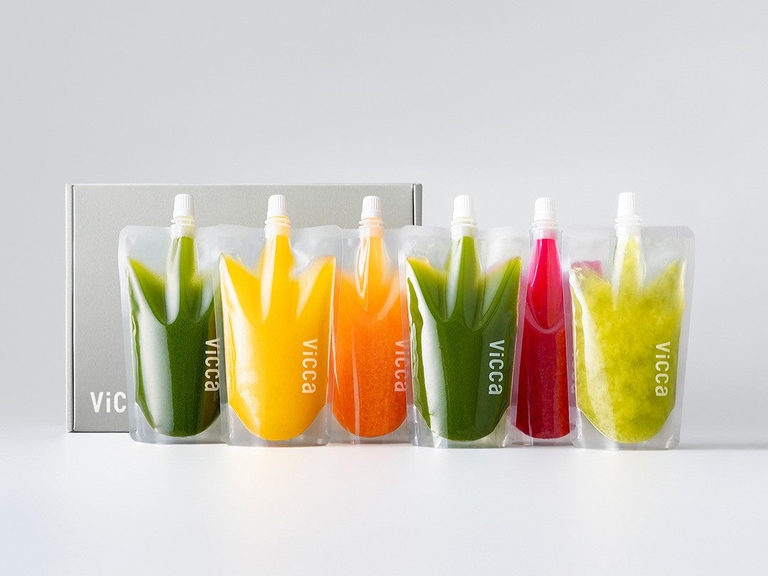 『Vicca』は、現代人の健康的なライフスタイルを実現するため、「フルーツを飲む」という新しい健康習慣を提案し、“フルーツウェルネス”の実現を目指す“ダブルプレスジュース”ブランドです。1本で1日に必要なフルーツ約200gを手軽に摂取できるジュースを、冷蔵便による定期配送サービスでご自宅までお届けします。