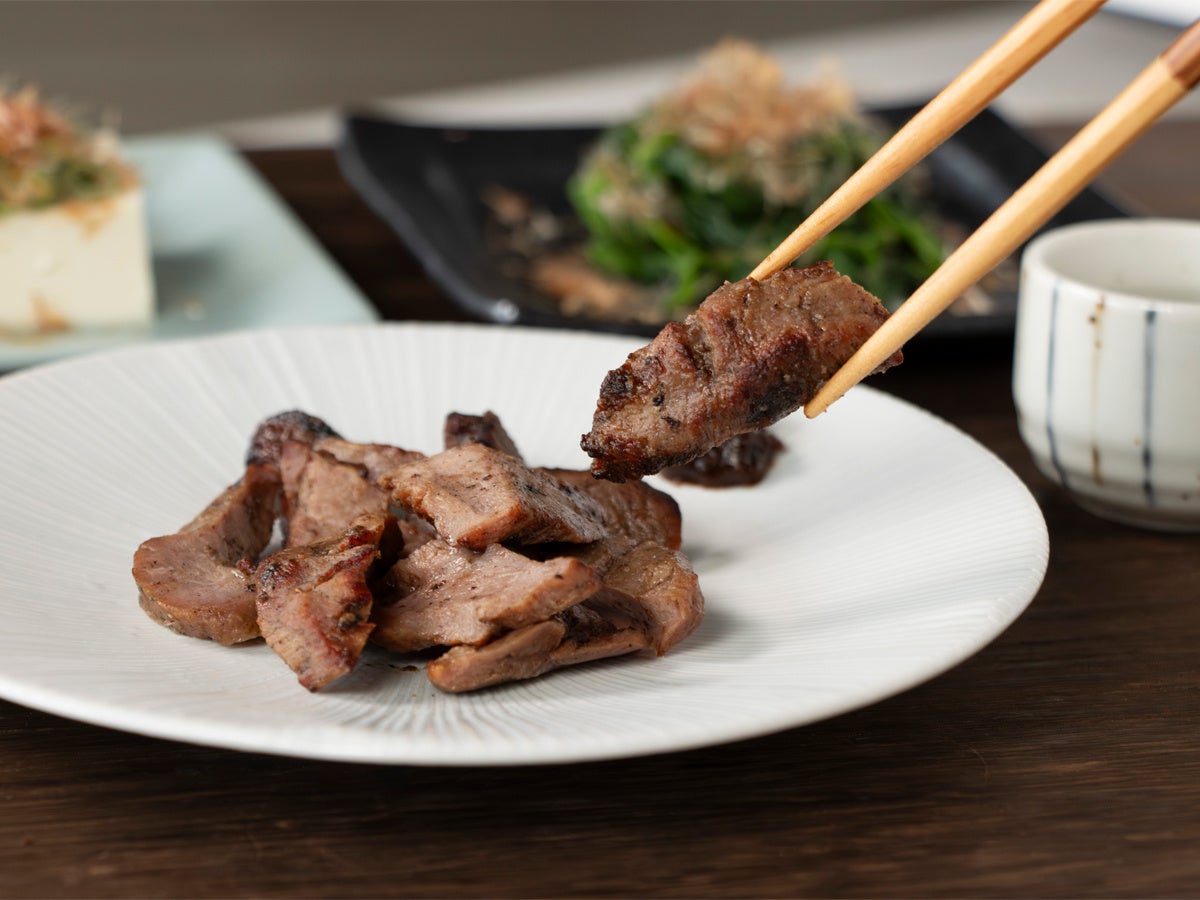 成牛の牛タンならではの歯ごたえと噛むほどに広がる旨みを、あらびき黒コショウの香りが引き立てます。