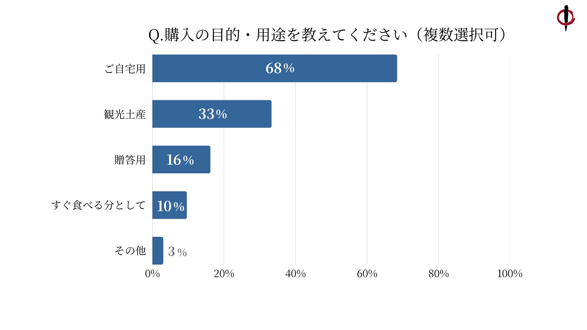 購入目的は約70%が「ご自宅用」、約30%が「観光土産用」と回答。自宅で気軽に楽しむ用途として選ばれていることが分かりました。