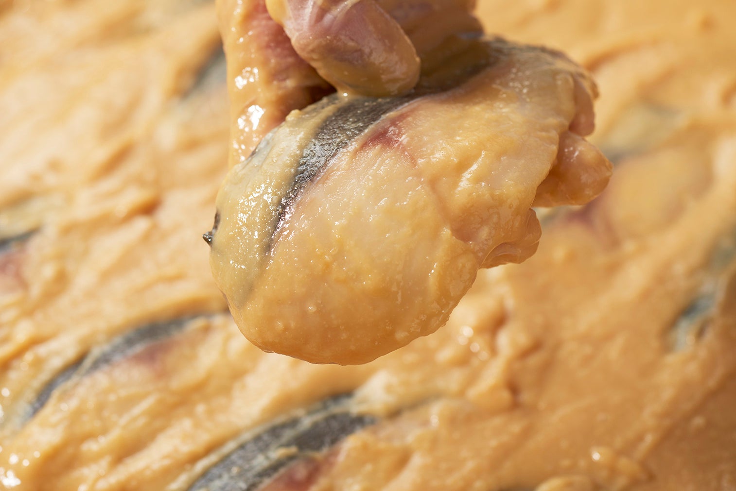京都一の傳では、厳選した魚を職人が一切れ一切れ丁寧に手切りし、たっぷりの味噌床に二昼夜かけて漬け込む「本漬け」製法で、西京漬け《蔵みそ漬》をお作りしています。