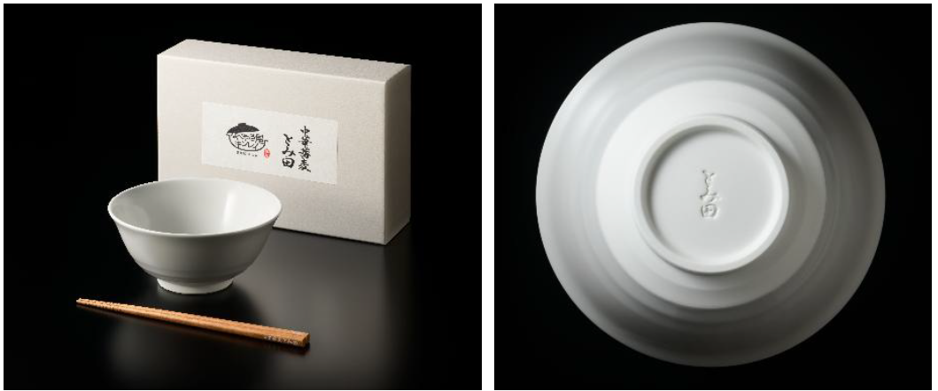 江戸時代に将軍や大名だけが使うことができた陶磁器・鍋島焼。鍋島焼虎仙窯さんに、日本最高峰のラーメン店・中華そばとみ田、カドヤ食堂、飯田商店のロゴ付きのプレミアムどんぶりを数量限定で特別に制作いただきました。ラーメン専用箸とともに限定化粧箱にいれてお届けいたします。