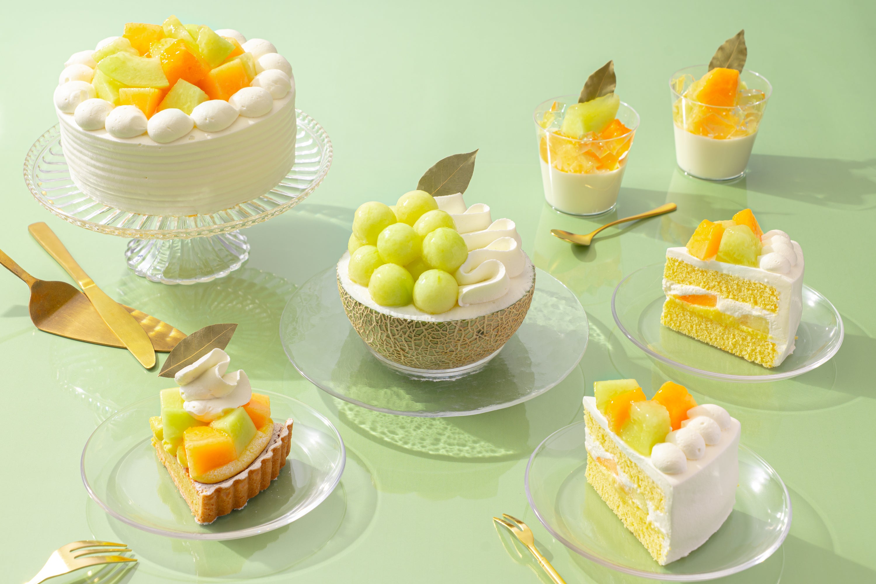 赤肉メロン×青肉メロンをダブルで楽しめる杏仁豆腐やタルト、パフェなど“メロンづくし”なスイーツが勢ぞろい