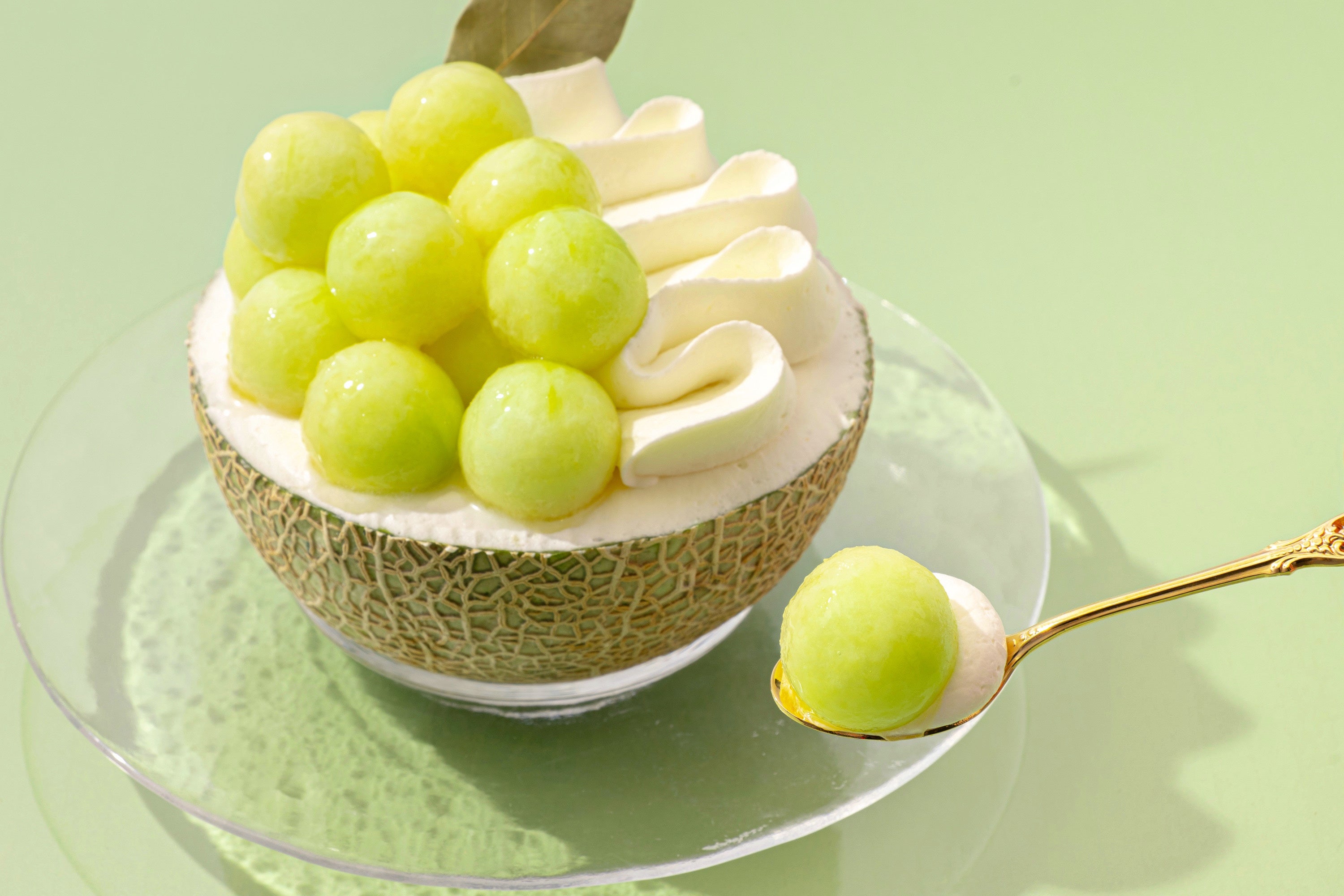 “メロンづくし”な一品です。思わず写真を撮りたくなるビジュアルで、自分へのご褒美スイ