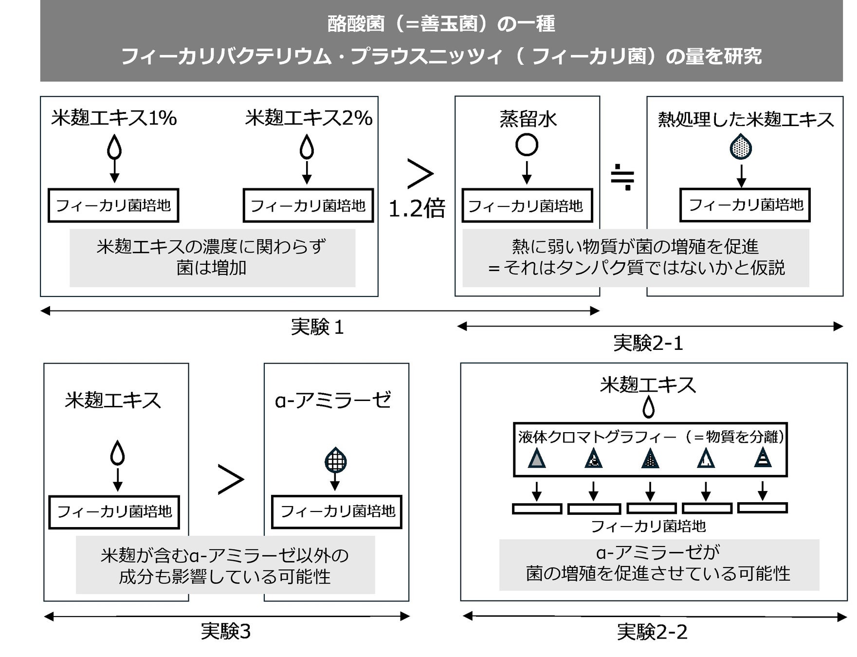 また米麹に含まれる「α-アミラーゼ」の酵素としての機能が、フィーカリ菌の増殖に重要な役割を果たす可能性があることも示しました。