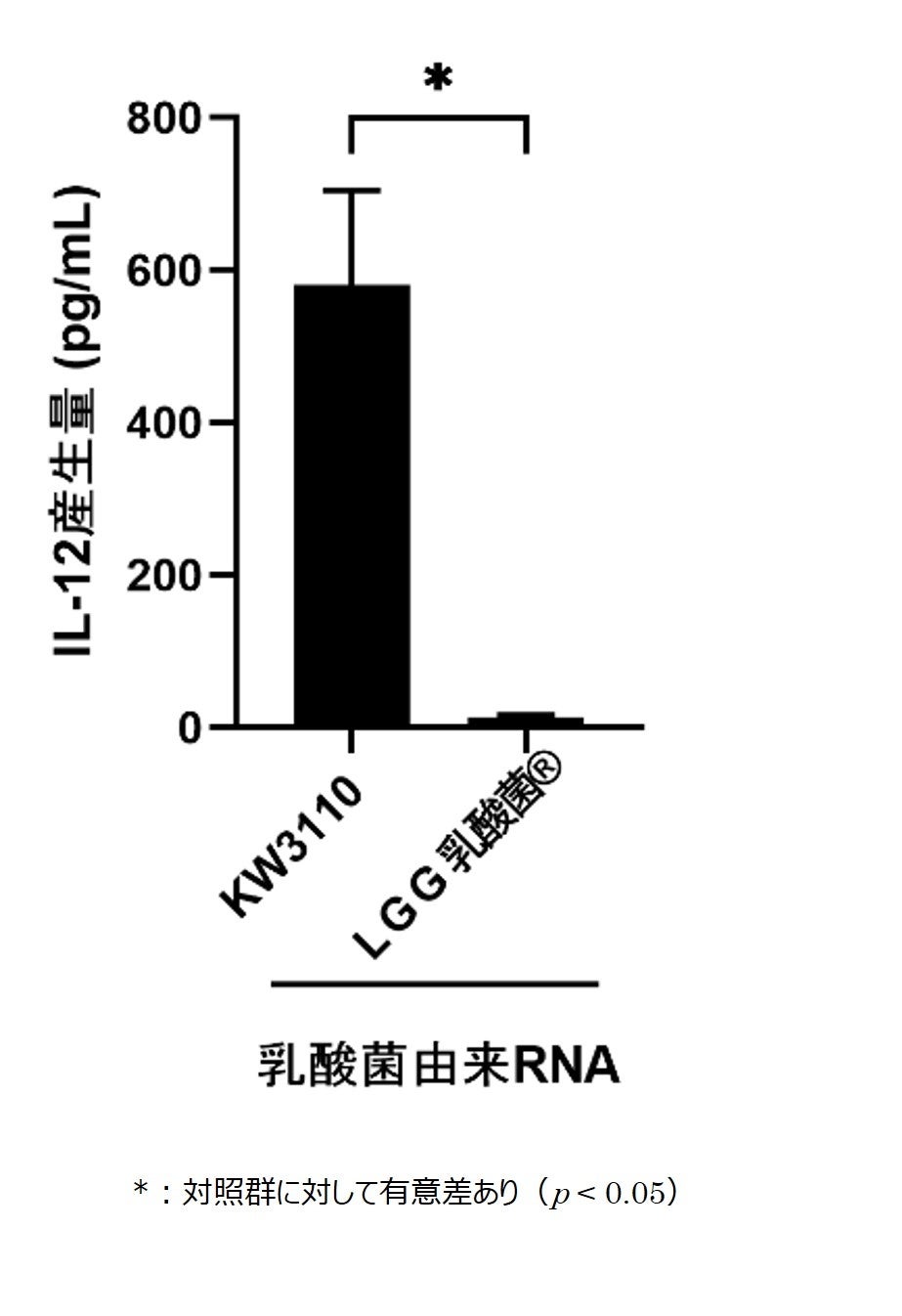 図4. 乳酸菌L. パラカゼイ KW3110由来RNAとLGG乳酸菌®由来RNAのIL-12産生誘導能の比較