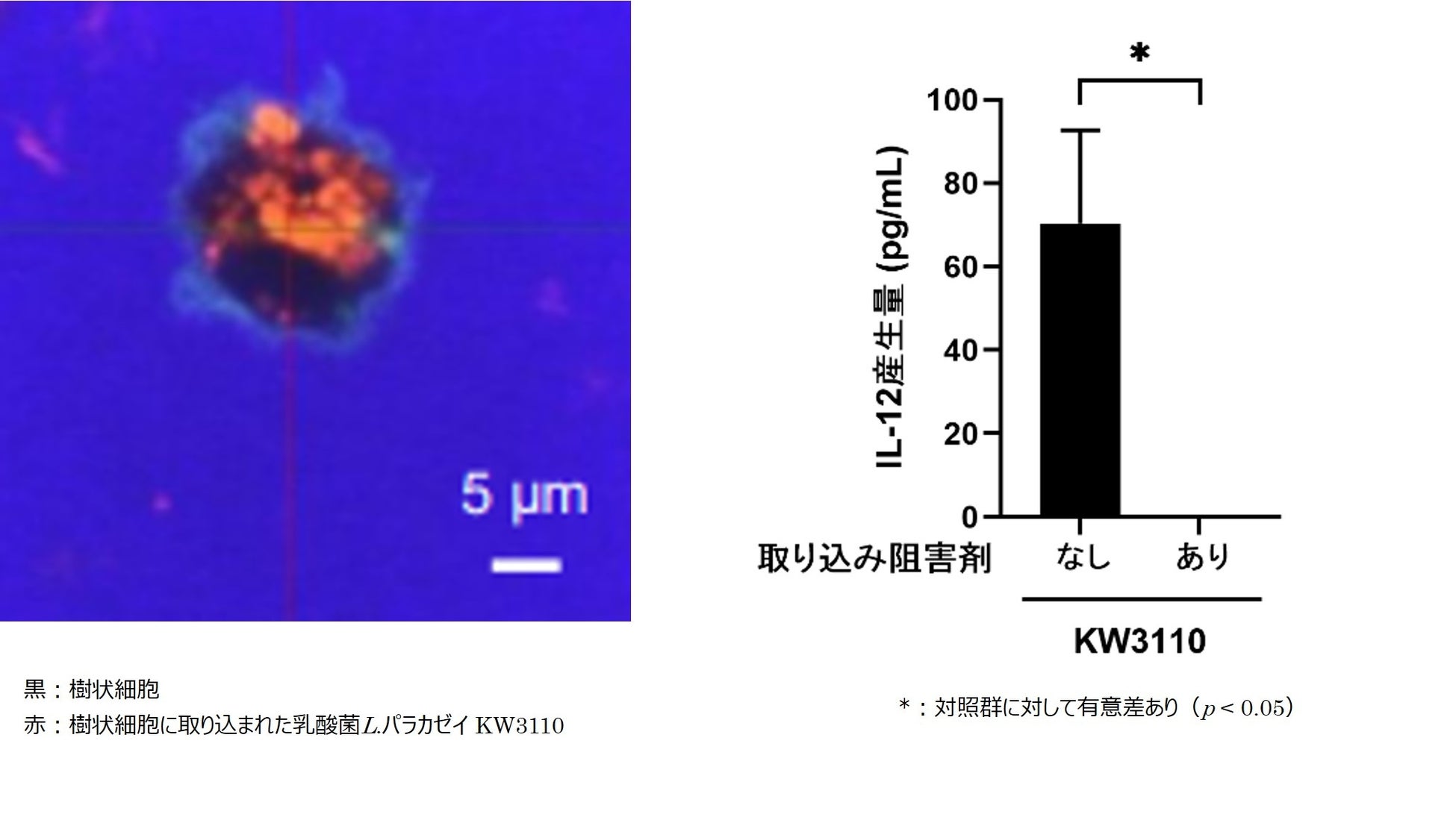 図2. 樹状細胞における乳酸菌L. パラカゼイ KW3110の取り込み