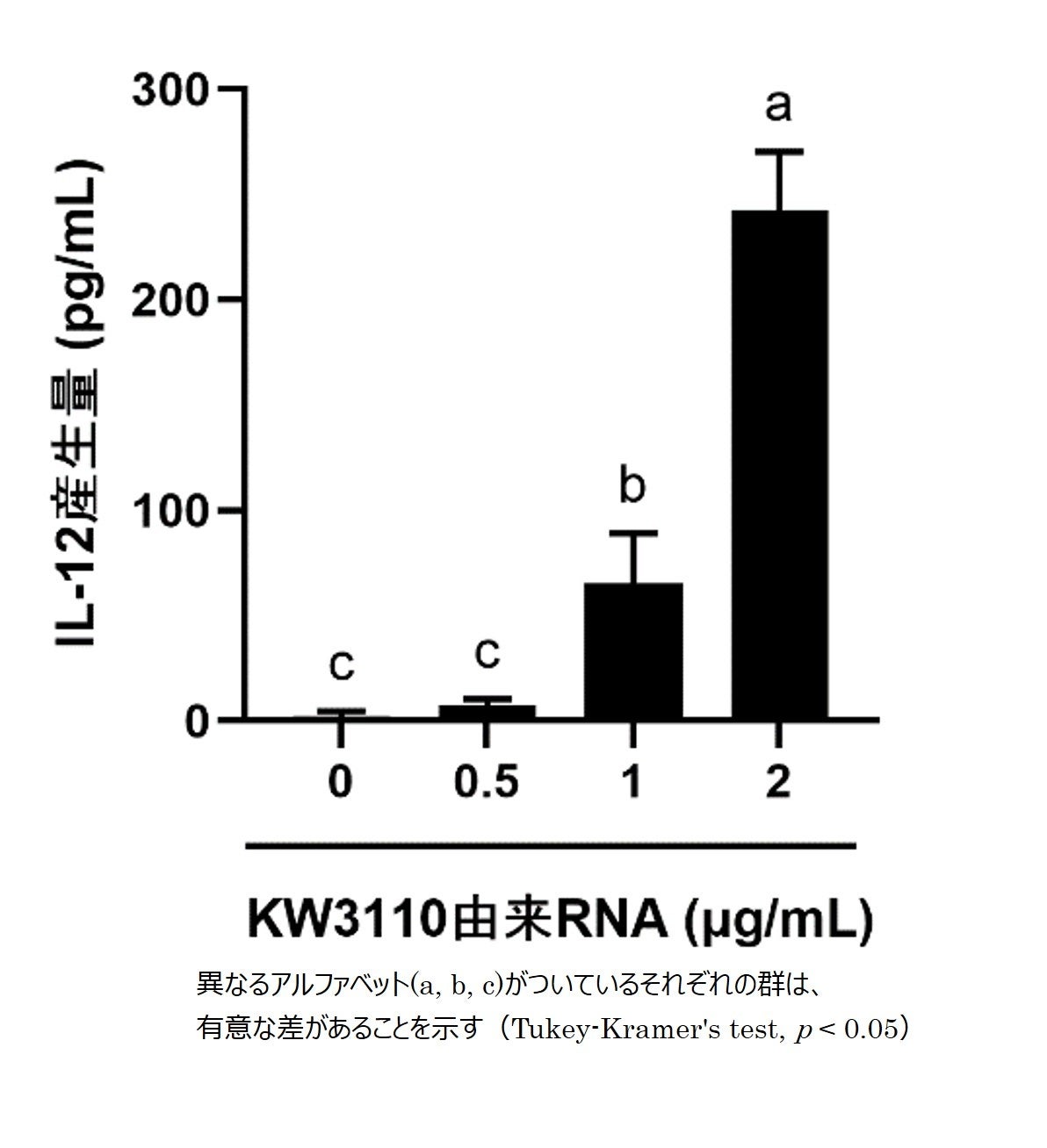 図1. 樹状細胞における乳酸菌L. パラカゼイ KW3110濃度依存的なIL-12産生誘導