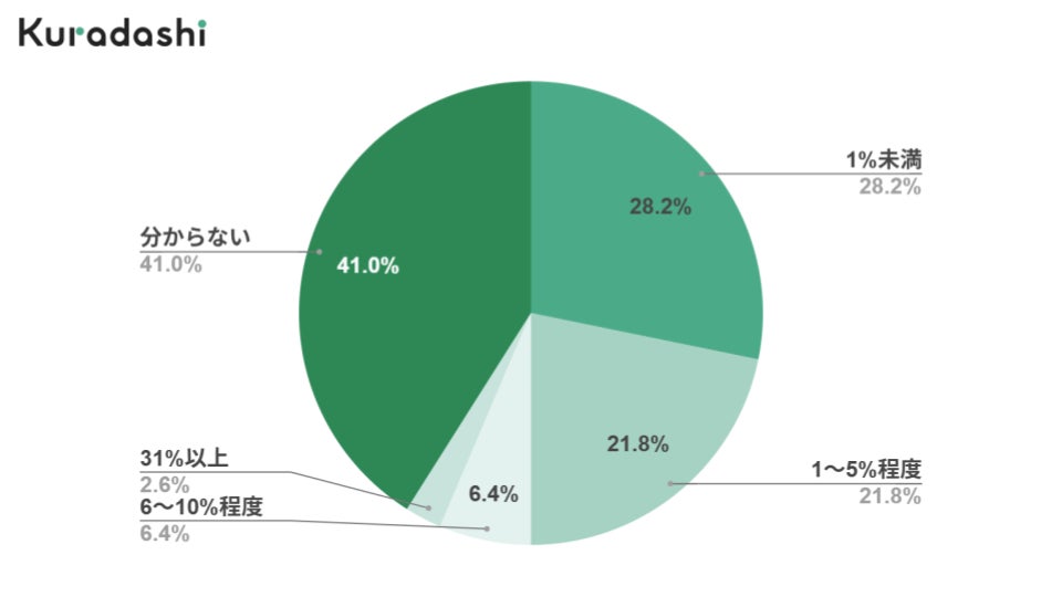「分からない」という回答を除くと「1%未満」の回答が最も多く28.2%でした。2024年調査点と比較すると、約7ポイント増加しており、食品事業者におけるフードロス発生率が減少傾向にあることが分かります。一方で、31%以上と回答した事業者が2.6%いる結果から、製造や流通過程におけるフードロス削減に今後も継続的に取り組む必要があると言えます。