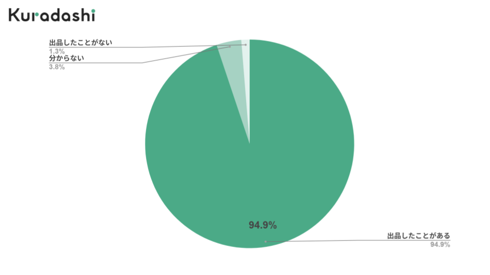 実際に出品経験がある事業者は94.9%となり、前回から13ポイント増加しました。